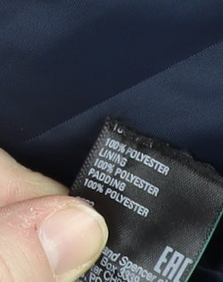 Stay warm and stylish with this Marks and Spencer Women's Navy Puffer Jacket in a comfortable size 14. Designed for the colder months, this mid-length coat combines practicality and fashion effortlessly. The cosy polyester outer shell and lining ensure maximum warmth without compromising on style. Featuring a full zipper closure and zipped pockets, it not only offers a secure way to keep your essentials safe but also adds to the elegant look. The quilted design brings a modern touch to this classic autumn and winter essential. The regular fit and long sleeves make it perfect for layering, while the mid-length offers added coverage against the chill. Whether you're heading for a casual outing or need a reliable everyday coat, this puffer jacket will keep you protected from the elements. Machine washable for your convenience, it effortlessly blends form and function. Offering excellent condition with very minor signs of wear, it's a wardrobe staple that's both durable and versatile. Don't miss out on adding this sophisticated piece to your collection.