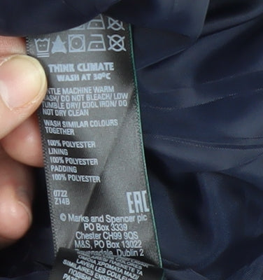 Embrace the colder months with style and comfort in this navy blue puffer jacket from Marks and Spencer. Crafted with 100% recycled polyester, this mid-length coat is both environmentally friendly and exceptionally warm, making it perfect for autumn and winter outings. Designed for the modern woman, this jacket offers a regular fit that ensures comfort without compromising on style. It features a full front zip closure and zipped pockets for added practicality and style. The recycled lining and padding provide insulation against the chill, making it an ideal choice for casual trips or travel. With long sleeves and a sleek, understated design, it suits a variety of occasions from casual days out to travel. The versatile navy color allows you to pair it effortlessly with various outfits, making it a staple piece for your autumn and winter wardrobe. Experience the blend of functional design and timeless elegance with this Marks and Spencer piece.