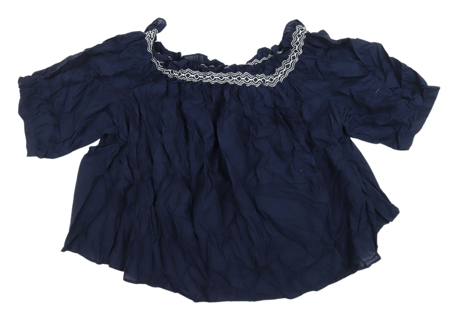 Elevate your wardrobe with this stylish navy blouse from Marks and Spencer. Designed for the modern woman, this off-the-shoulder blouse combines elegance with comfort, making it a versatile piece suitable for both casual outings and semi-formal gatherings. Crafted from a soft blend of cotton and polyester, this blouse offers a breathable and comfortable fit, perfect for spring and summer days. The solid blue colour strikes a sophisticated tone, while the embroidered accents at the neckline add a touch of charm and uniqueness to the design. Its relaxed fit ensures freedom of movement, making it a delightful choice for your daily adventures. The casual sleeve length paired with its pullover style allows you to go about your day with ease. Ideal for those who appreciate comfort without compromising on style, this blouse can be paired with your favourite jeans or skirt, offering endless outfit possibilities. Machine washable, maintaining this piece is hassle-free, ensuring you can keep it looking as good as new with minimal effort. A must-have for any wardrobe, this blouse promises to add a dash of elegance and fun to your clothing collection.