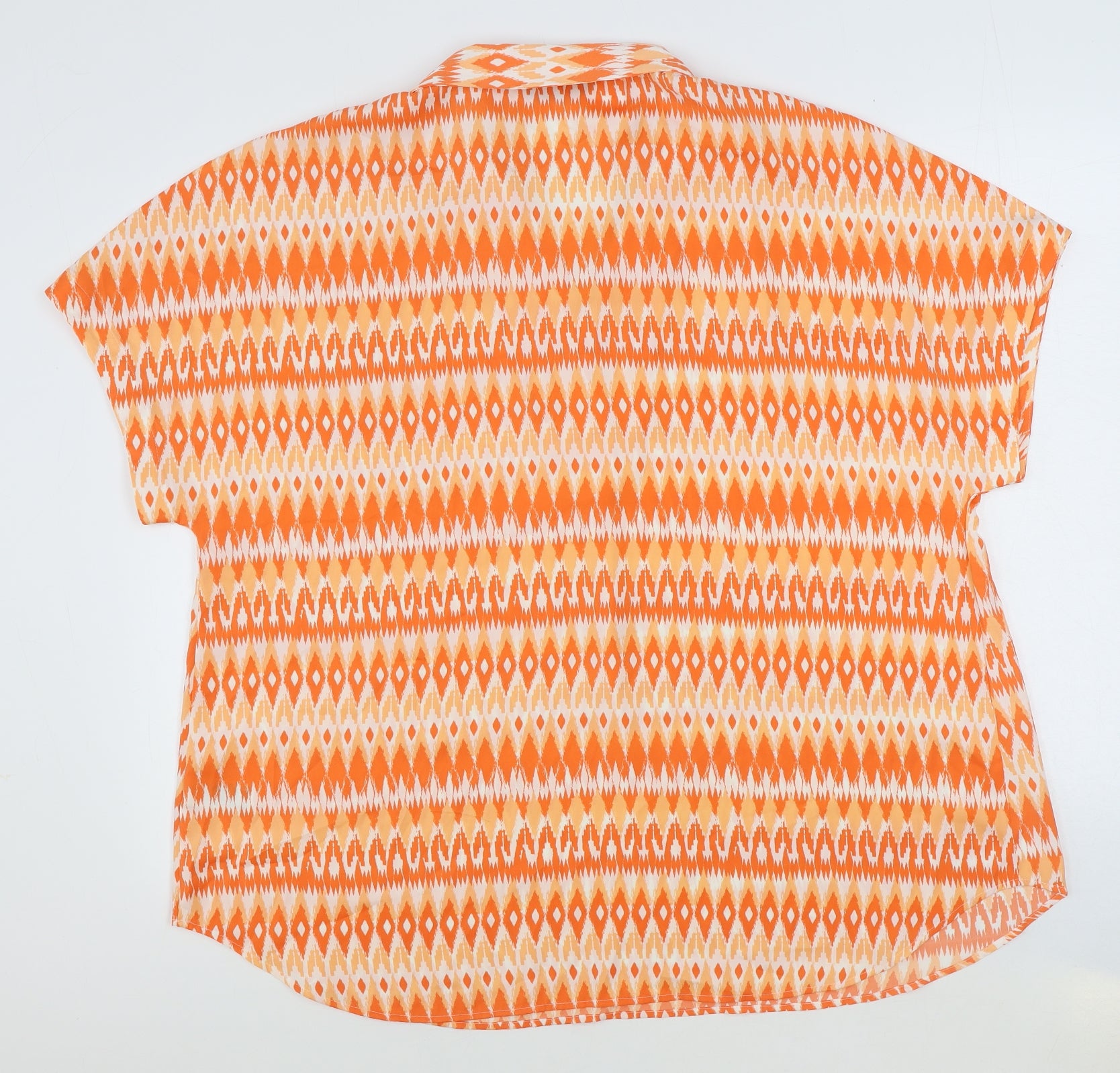Womens Orange Geometric Polyester Basic Blouse Size 18 Collared