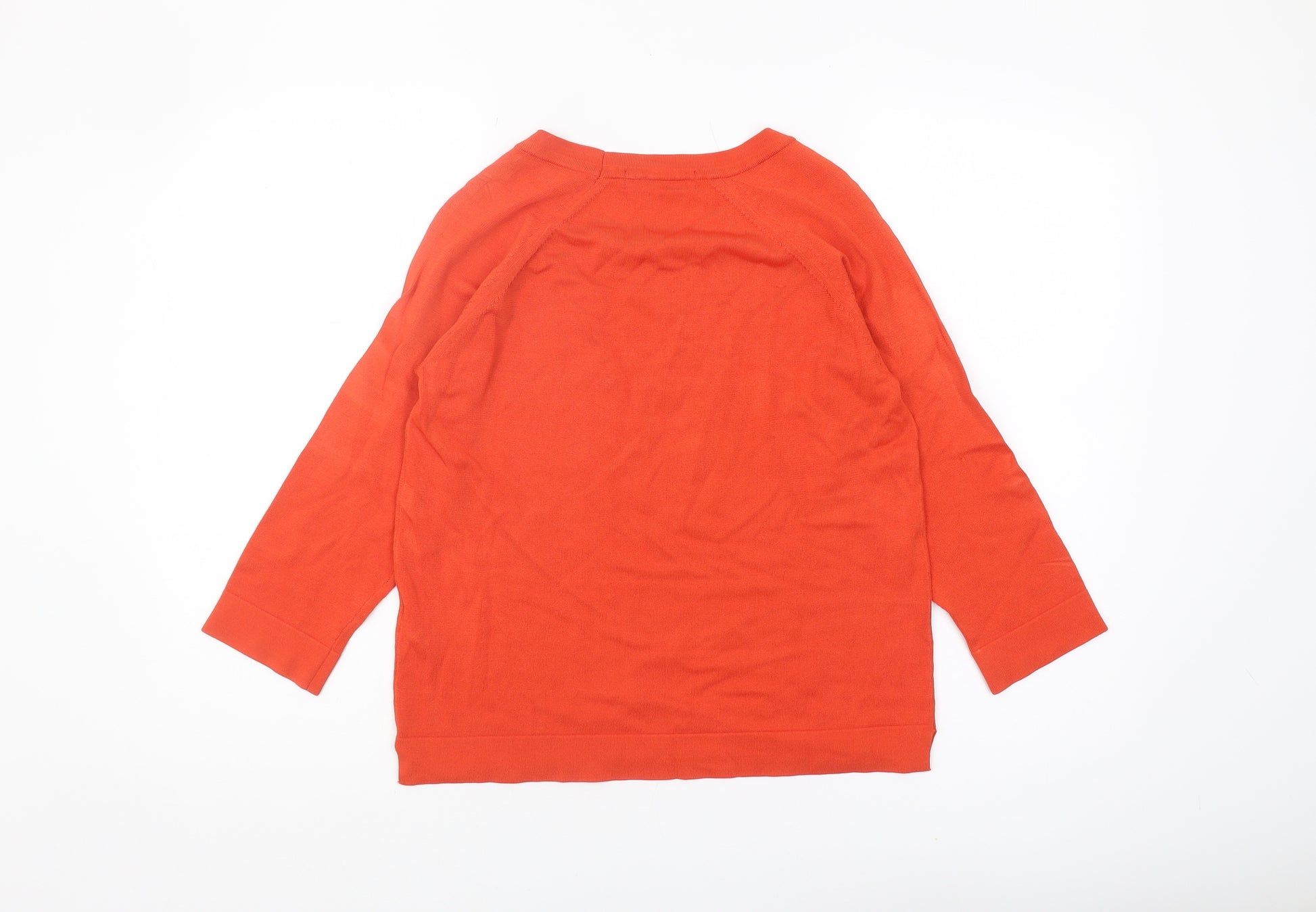 Add a splash of colour to your wardrobe with this delightful Marks and Spencer Women's Orange Pullover Jumper. Designed with a flattering regular fit and featuring a stylish round neck, this jumper is perfect for casual occasions and offers comfortable wear all year round. Crafted from a blend of high-quality viscose and polyamide, the soft knit fabric ensures a cosy feel and an impeccable fit. The vibrant orange hue is sure to brighten any day and makes for a great layering piece in cooler weather. With 3/4 raglan sleeves, it offers a touch of modern chic perfect for any casual outing. Machine washable for easy care, this jumper promises durability and ease of maintenance. Elevate your casual style with this classic yet contemporary pullover, ideal for pairing with jeans or trousers for an effortlessly stylish look. Don't miss out on this charming wardrobe essential!