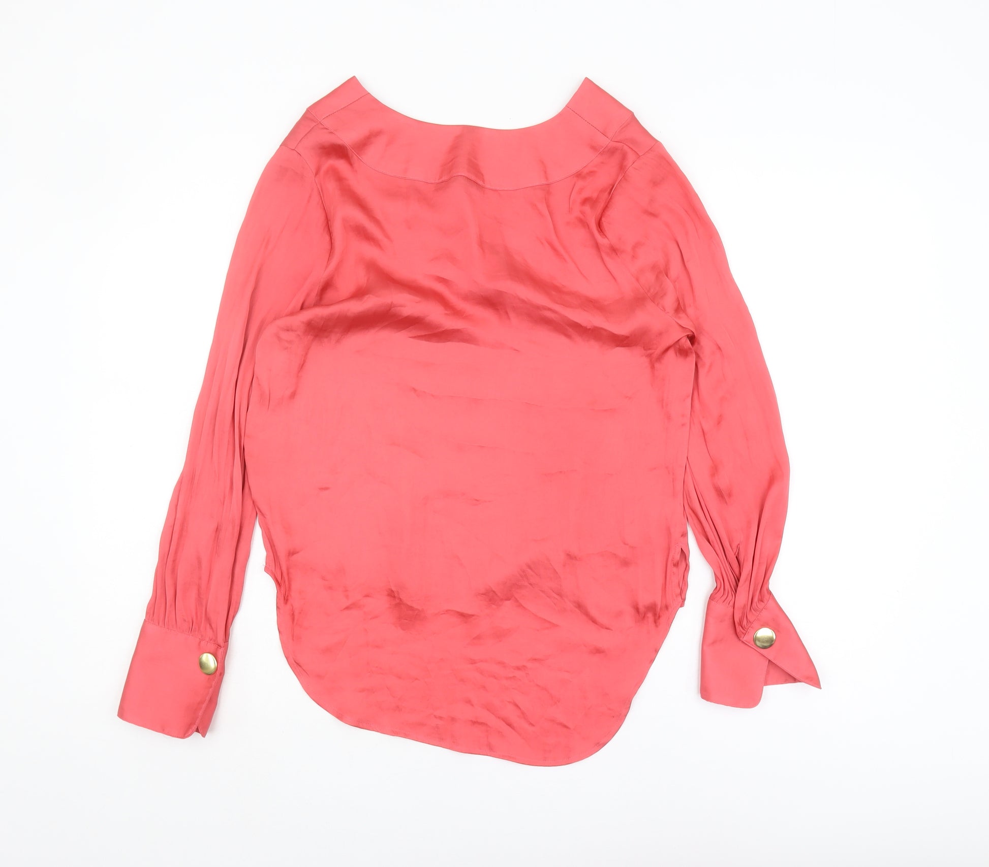 Women's Pink Blouse UK 8 V-Neck Long Sleeve