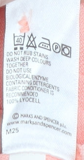 Discover the perfect blend of style and comfort with this Marks and Spencer button-up shirt. Crafted from 100% Lyocell, this short-sleeve top offers a soft and breathable feel, making it ideal for everyday casual wear. The shirt comes in a delicate pink tone, adding a touch of femininity to your wardrobe. Its collared neckline and button accents provide a classic look, while the roll tab sleeves offer versatility. Sized at a UK 16, this top fits comfortably on regular frames, ensuring a flattering silhouette without compromising on relaxation. Although slightly wrinkled, the shirt is in excellent condition, ready to enhance your ensemble. Pair it with jeans or trousers for a chic, laid-back look. Its machine washable nature ensures easy care, making it a practical choice for busy lifestyles. Update your collection with this timeless piece that promises to be a staple across seasons.