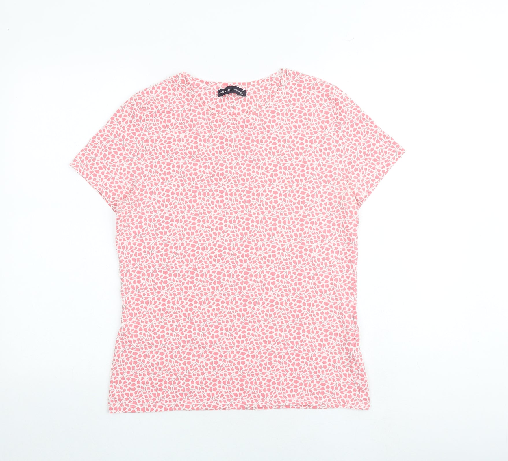 Womens Pink Cotton Basic T-Shirt Size 14 Round Neck