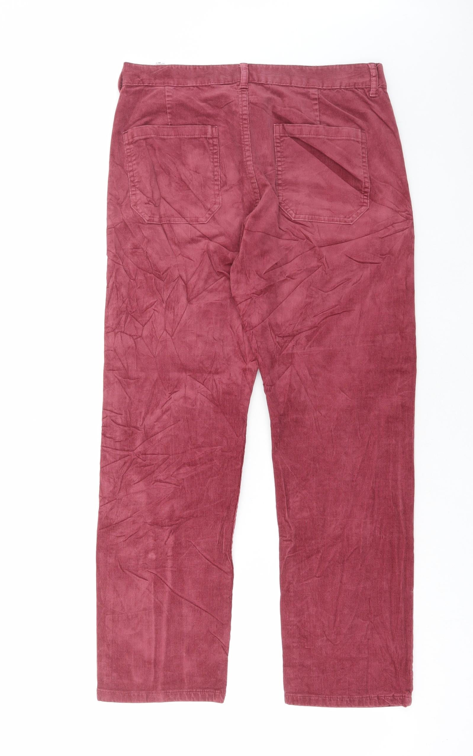 Womens Pink Cotton Trousers Size 12 L26 in Regular Button