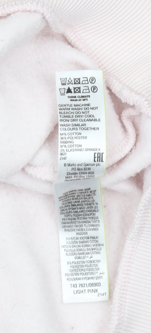 Elevate your casual wardrobe with this delightful Marks and Spencer women's pink pullover sweatshirt. Crafted with a soft blend of cotton and polyester, this jersey fabric ensures ultimate comfort and durability, making it perfect for everyday wear. The crew neck design, paired with long sleeves, offers a classic and relaxed fit, ideal for any casual occasion. Available in size 12, this regular fit sweatshirt features a minimalist style with no patterns, making it versatile and easy to pair with any outfit. Designed with all seasons in mind, this sweatshirt keeps you cosy during the cooler months while remaining breathable in warmer weather. Whether you're lounging at home or heading out for a casual day out, this sweatshirt is a must-have addition to your wardrobe. With a chic pink hue, it adds a touch of femininity and elegance to your ensemble. Its easy-care machine washable feature ensures hassle-free maintenance, making it perfect for your active lifestyle. Don't miss the chance to own this new with tags Marks and Spencer sweatshirt that combines style, comfort, and practicality seamlessly.