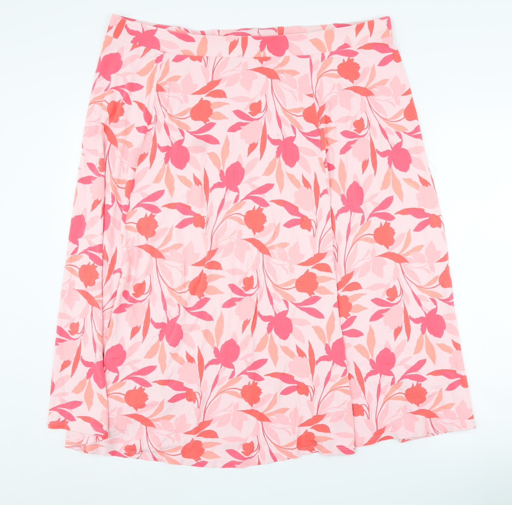 Elevate your wardrobe with this eye-catching floral A-line skirt from Marks and Spencer, perfect for adding a burst of colour to any outfit. Cut in a flattering long length, this pink skirt features a vibrant floral pattern that effortlessly embodies femininity and charm. Made from a comfortable and breathable blend of 95% Viscose and 5% Elastane, it offers a soft and smooth touch with a hint of stretch for an easy fit. Whether you're dressing it up for a sophisticated evening or pairing it with a casual top for a laid-back day out, this skirt is versatile enough to suit any occasion. Machine washable for your convenience, this timeless piece combines style and practicality. While it carries minor signs of wear with a small spot on the fabric, it remains in very good condition and is ready to become a staple in your collection.