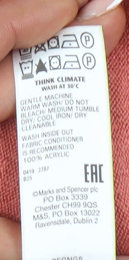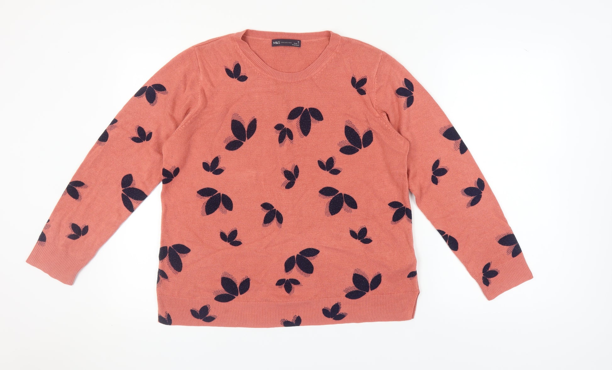 Add a touch of floral charm to your wardrobe with this beautiful Marks and Spencer women's jumper, perfect for year-round wear. Crafted from 100% acrylic, this pullover offers a lightweight and comfortable fit, ideal for laid-back casual occasions. The soft pink hue, adorned with a delicate floral pattern, brings a fresh and feminine look to your outfit, making it a versatile piece for any wardrobe. The regular fit and crew neckline provide a classic silhouette, while the long sleeves ensure warmth and style in cooler weather. Designed for the modern woman, this jumper is perfect for layering over your favourite tops or pairing with trousers for a relaxed yet stylish ensemble. Easy to care for, this knit is machine washable, making it a practical addition to your clothing collection. Whether you're heading out for a casual day trip or enjoying a lazy weekend at home, this jumper offers the perfect blend of comfort, style, and quality. Don't miss the chance to own this lovely piece by Marks and Spencer, known for their exceptional craftsmanship and classic British style. Add it to your wardrobe today and experience the perfect combination of elegance and everyday wearability.