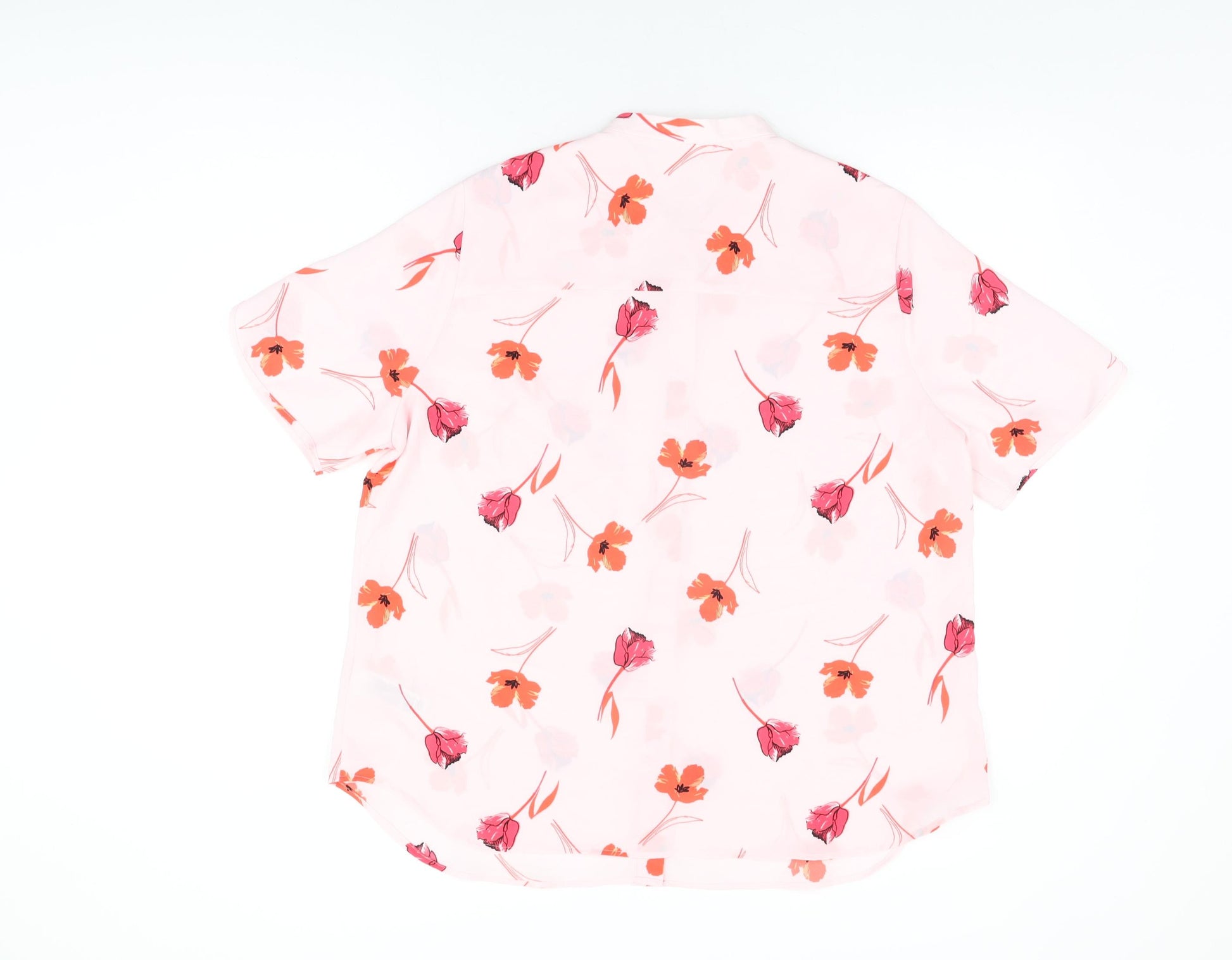 Womens Pink Floral Polyester Basic Button-Up Size 16 Round Neck