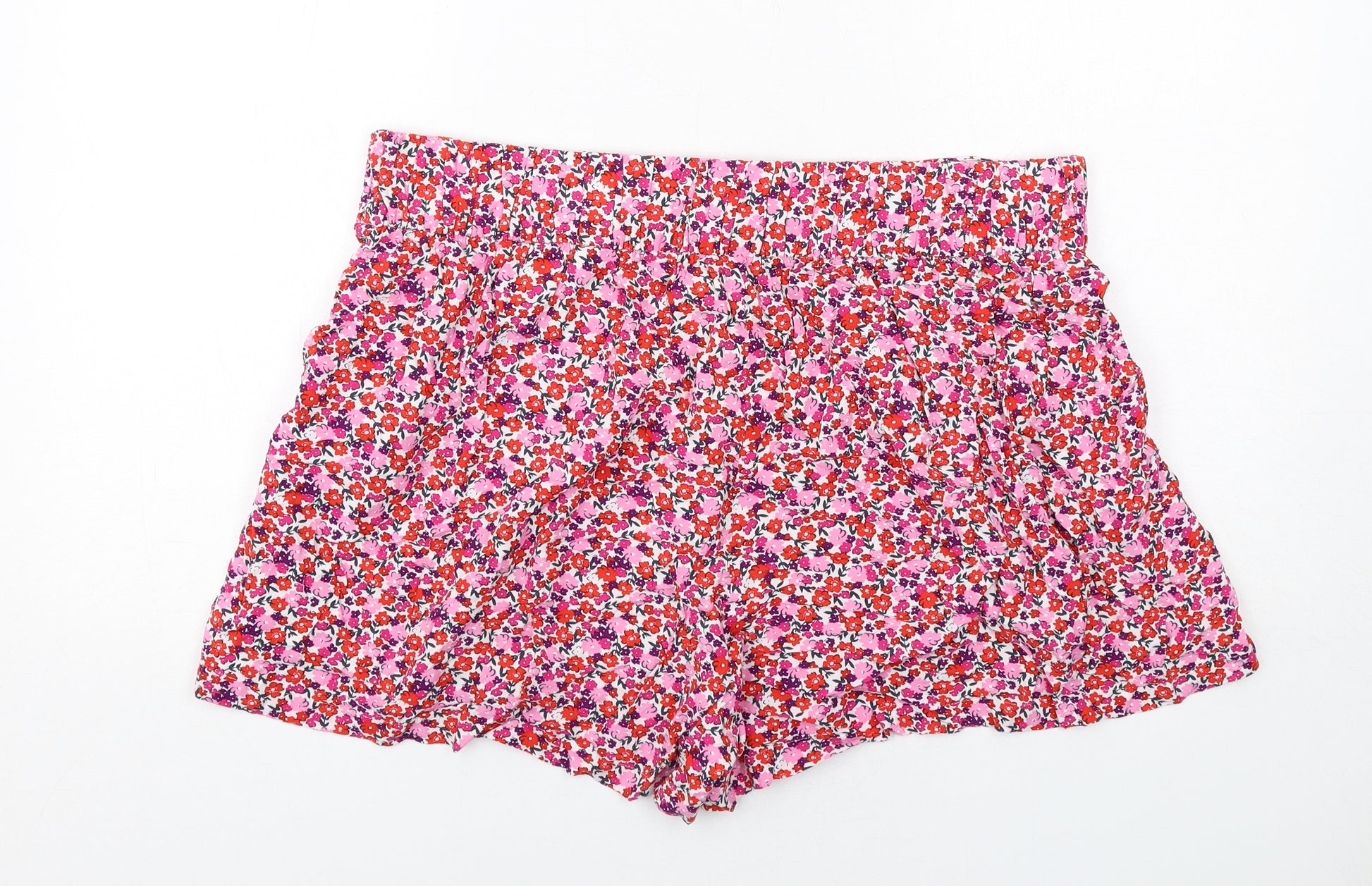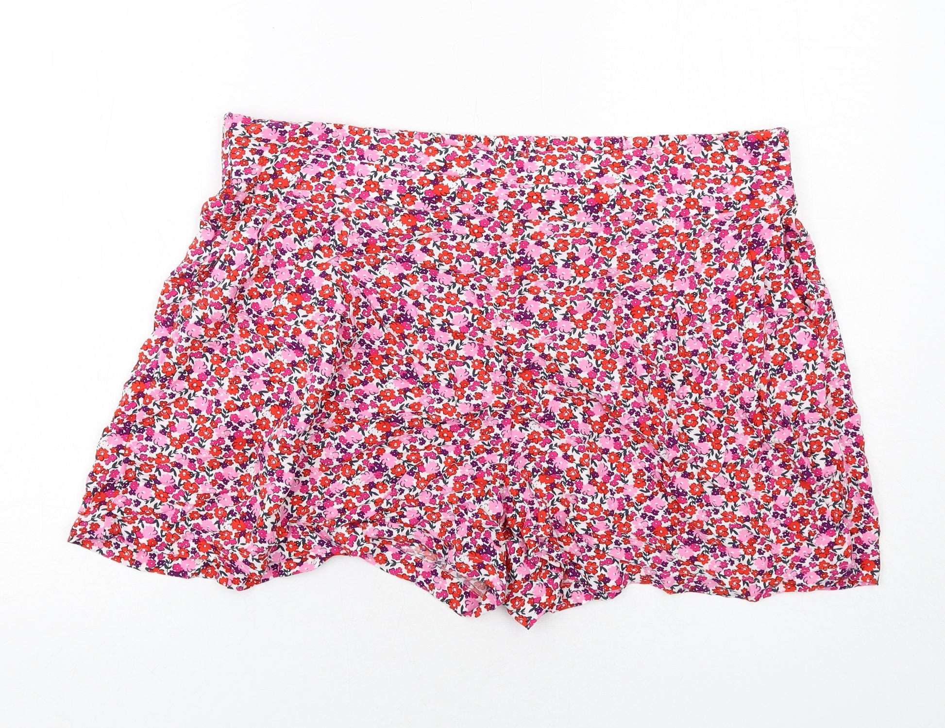 Womens Pink Floral Viscose Basic Shorts Size 18 Regular Pull On