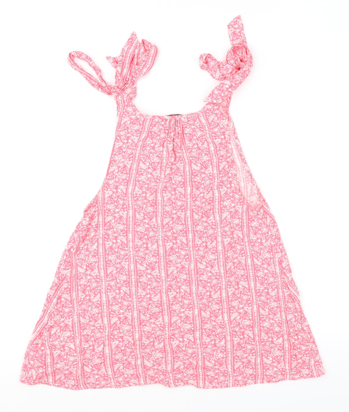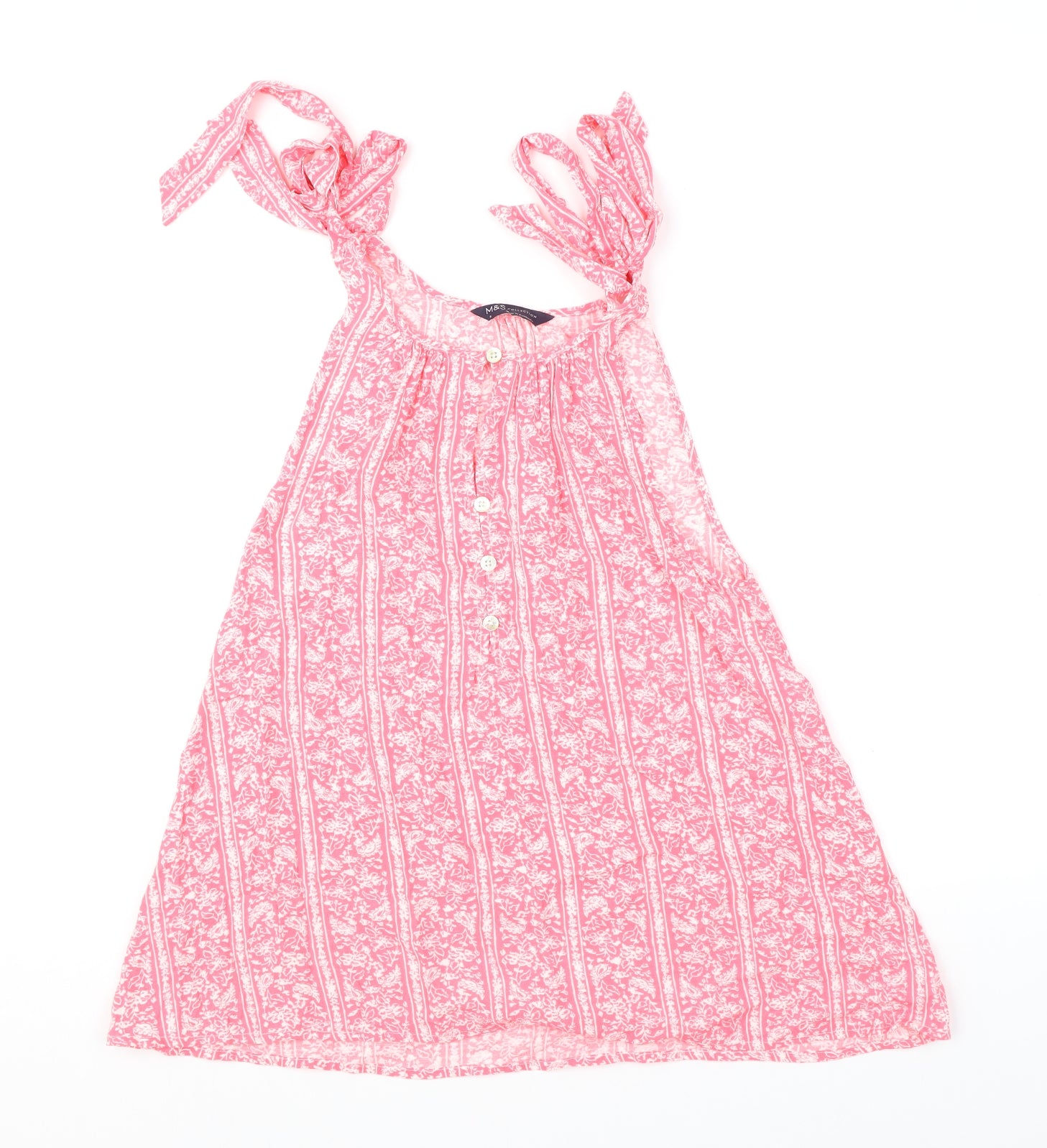Womens Pink Geometric Viscose Basic Tank Size 6 Round Neck