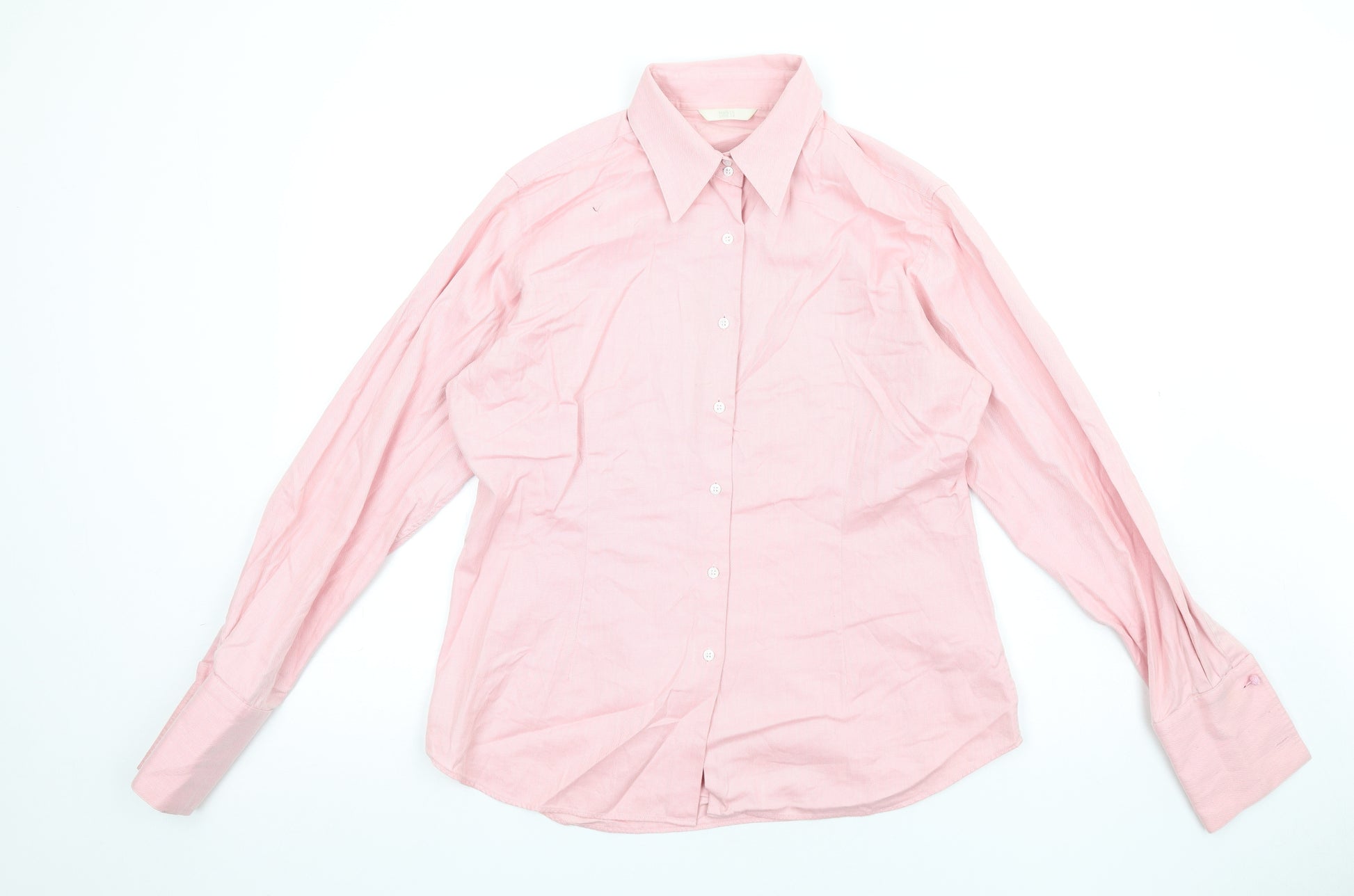 Womens Pink Herringbone Cotton Basic Button-Up Size 16 Collared
