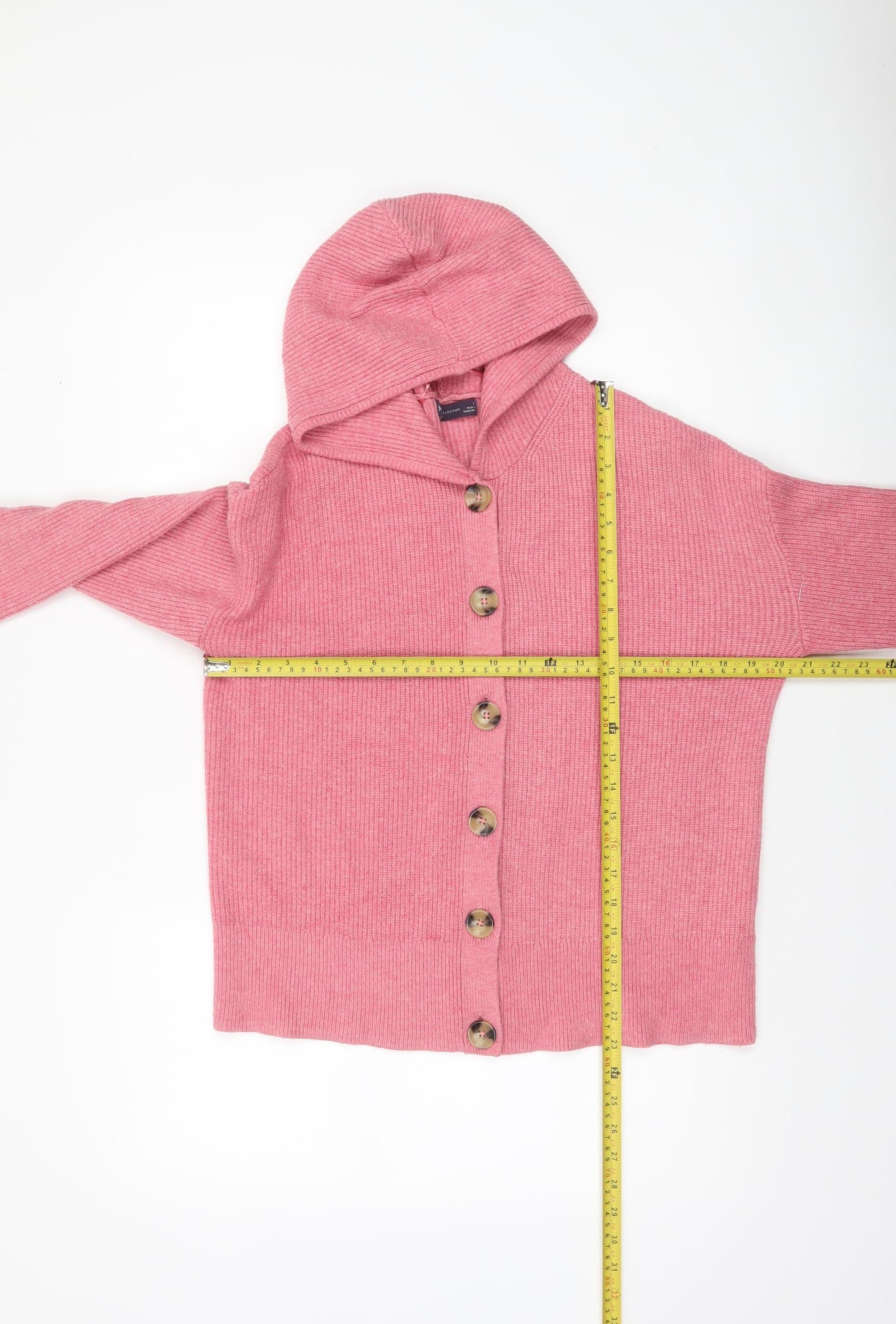 Add a cosy touch to your wardrobe with this beautifully soft pink hooded cardigan from Marks and Spencer. Designed for women in a flattering size L, it offers a relaxed regular fit perfect for layering during cool autumn and winter days. Crafted from a quality knit blend of polyester, acrylic, nylon, and wool, this cardigan combines warmth, comfort, and easy care in one stylish piece. The ribbed-knit texture adds a classic finish, while the large buttons running down the front create a timeless cardigan look that’s both functional and elegant. The addition of the hood gives this piece a modern, laid-back twist, making it an ideal choice for casual weekend wear or relaxing at home. Featuring long sleeves for warmth and a midweight structure that makes it suitable for all-season layering, this cardigan provides both comfort and style. Its plain pink shade makes it an easy match with jeans, leggings, or skirts for versatile outfit options. The piece is machine washable for hassle-free care and designed with Marks and Spencer’s focus on practicality and quality. Whether you’re looking for a go-to layering piece for the office or something to lounge in comfortably, this cardigan combines charming simplicity with lasting wearability. Gently used and in excellent condition, it shows no visible signs of wear, ensuring that you’ll receive a high-quality piece ready to enjoy right away. Elevate your casual style with this classic yet modern pink hooded cardigan—ideal for keeping cosy and stylish all season long.