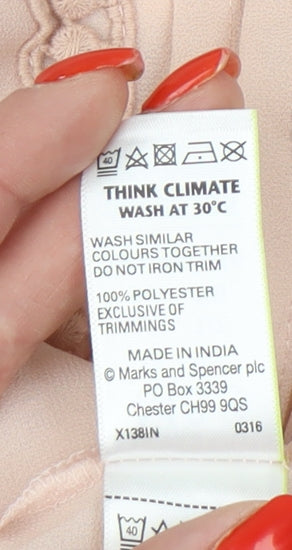 Enhance your wardrobe with this elegant pink blouse from Marks and Spencer. Crafted from 100% polyester, this lightweight top offers a delicate balance of style and comfort, perfect for casual outings or adding a touch of class to your everyday look. The long sleeves feature stylish lace accents, complemented by a flattering V-neckline that adds a hint of sophistication. Designed for women, this blouse is ideal for pairing with your favourite jeans or a sleek skirt. With a fresh, new with tags condition, you'll enjoy the pristine quality Marks and Spencer is renowned for. This blouse is perfect for those who appreciate timeless elegance in their wardrobe. Add a dash of charm and grace with this versatile piece, suitable for many occasions.