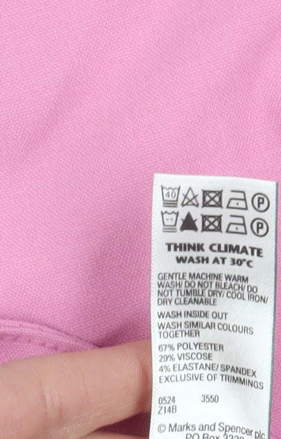 Introducing the stylish and versatile Marks and Spencer women's pink pleated trousers in size 16. These trousers are perfect for fashion-forward individuals looking to make a statement with their wardrobe. Crafted with care, they feature a high-quality blend of materials including polyester, viscose, and elastane, ensuring durability, a comfortable fit and a touch of stretch. The vibrant pink hue adds a pop of colour to your outfit, making it ideal for various occasions, be it casual outings or more formal gatherings. The trousers boast a chic pleated front, adding a classic and sophisticated touch to the design. These versatile trousers can be paired with a variety of tops, from casual tees to elegant blouses, making them a must-have addition to your wardrobe. With their modern and flattering fit, they provide comfort without compromising on style. Easy to care for, they are machine washable, ensuring that maintaining their pristine condition is a breeze. Elevate your wardrobe with these Marks and Spencer trousers, a perfect blend of fashion and functionality.