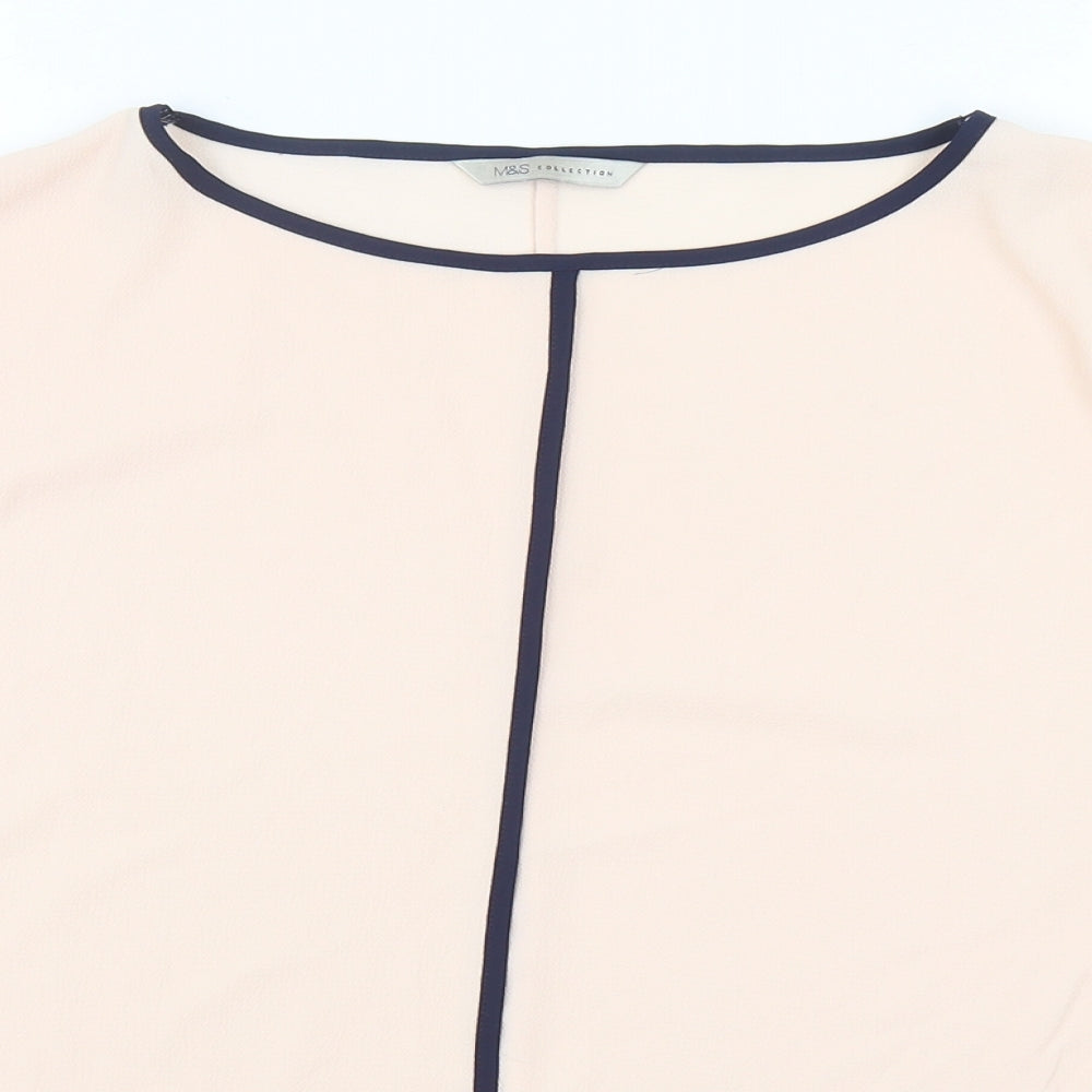 Womens Pink Polyester Basic Blouse Size 12 Boat Neck