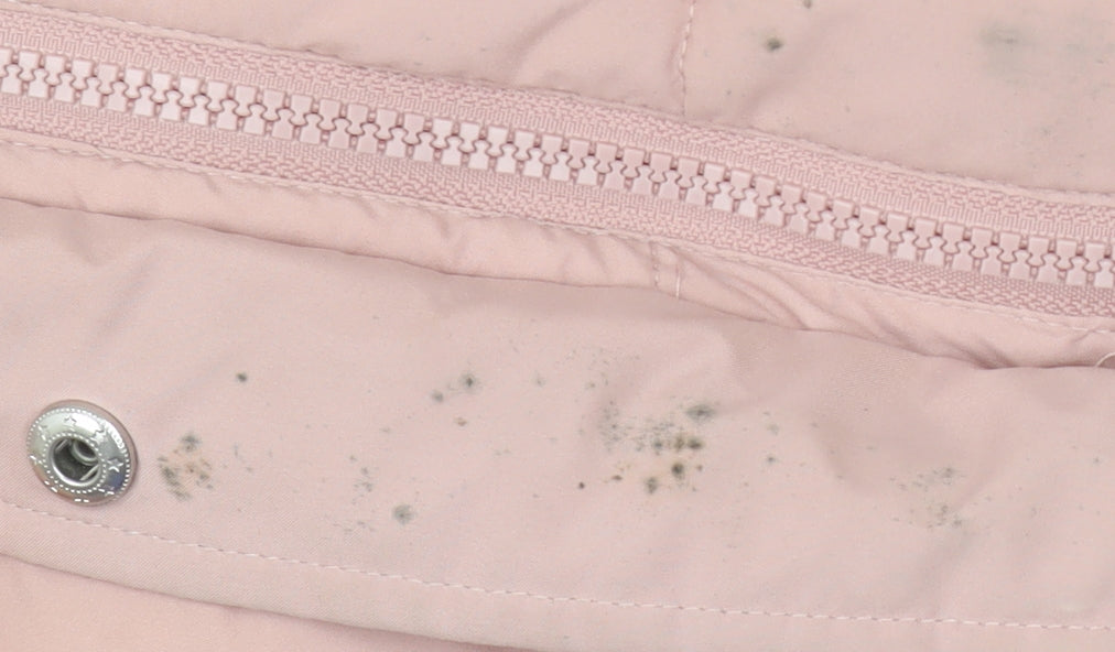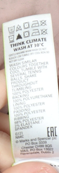 Stay warm and stylish with this Marks and Spencer Women's Pink Puffer Jacket in size 14. Designed for the modern woman, this casual winter jacket features a hood to keep you protected against the elements and zipped pockets for convenience and practicality. Made from durable polyester both inside and out, it ensures comfort and ease of movement, making it an excellent choice for casual winter outings. This hooded puffer style not only offers exceptional warmth but also represents a timeless fashion statement with its elegant pink hue. The jacket features a quilted pattern that enhances its insulation capabilities while the zip closure ensures ease of use. Perfect for casual occasions, it's machine washable which adds to its practicality. Please note, the jacket is in good condition showing some minor stains, indicative of a pre-loved item. A perfect addition to your wardrobe, offering both functionality and a touch of style!