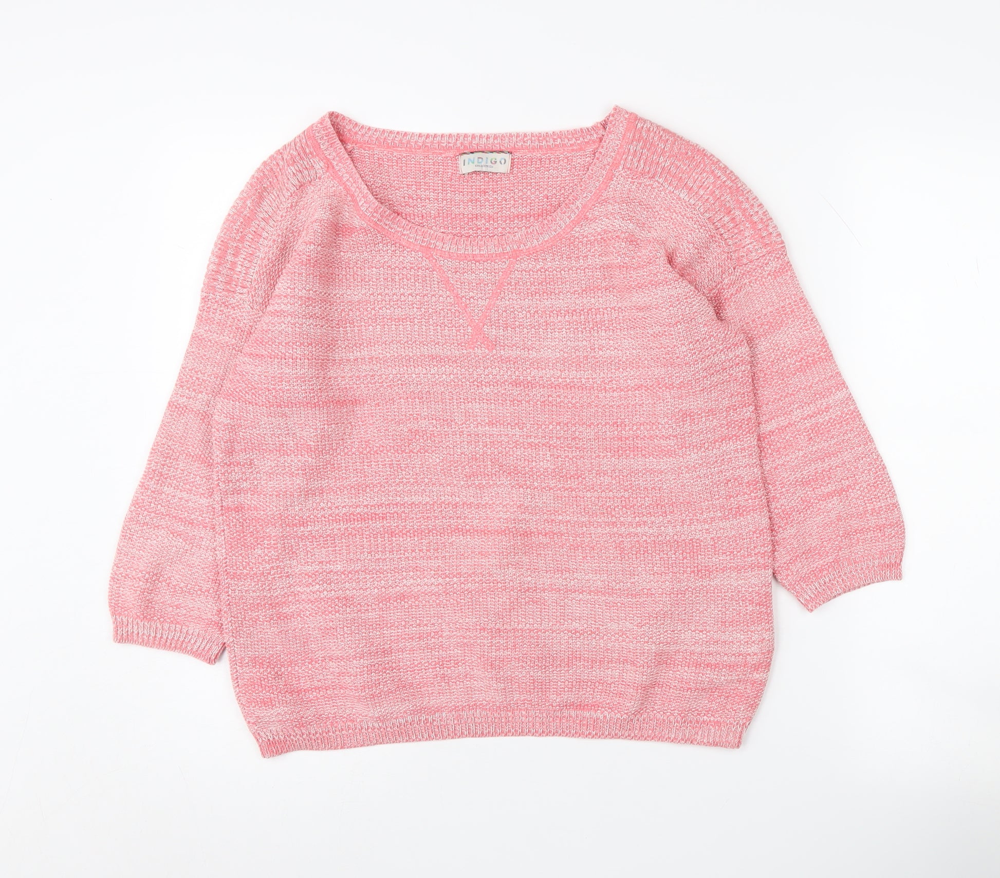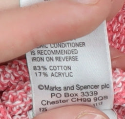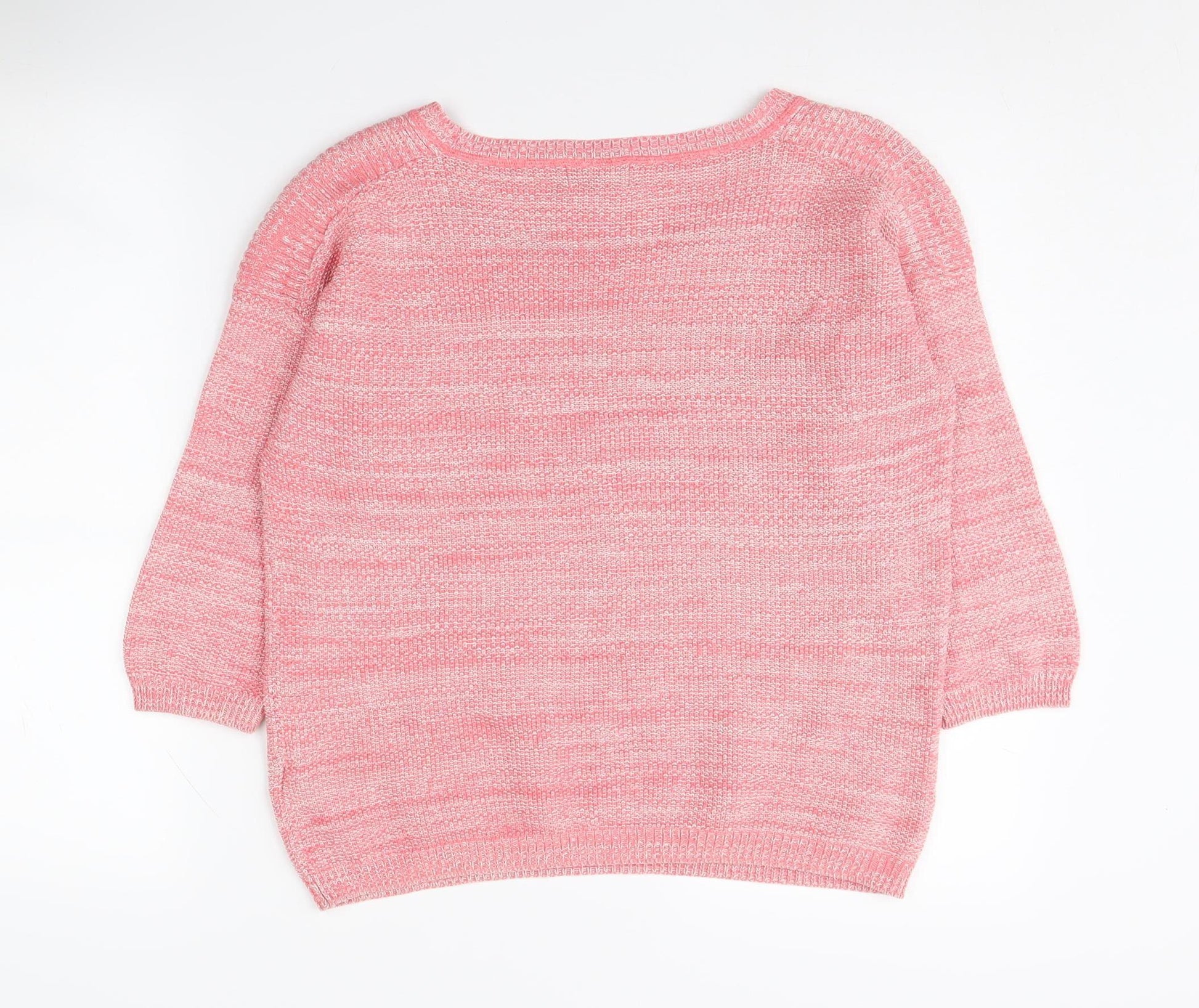 This charming Marks and Spencer jumper, crafted from a breathable cotton-acrylic blend, offers a perfect balance of comfort and style. The delightful pink hue and lightweight, tight-knit design make it an ideal choice for transitional seasons like spring and autumn. The regular fit flatters the figure while the classic crew neckline and raglan 3/4 sleeves provide a timeless appeal. As a versatile addition to any wardrobe, this pullover is suitable for casual occasions, whether you're meeting friends for coffee or enjoying a relaxed day out. Its machine-washable fabric ensures convenience and ease of care, keeping you effortlessly stylish with minimal fuss. Elevate your everyday ensemble with this lovely, gently used jumper, available at a great value price.