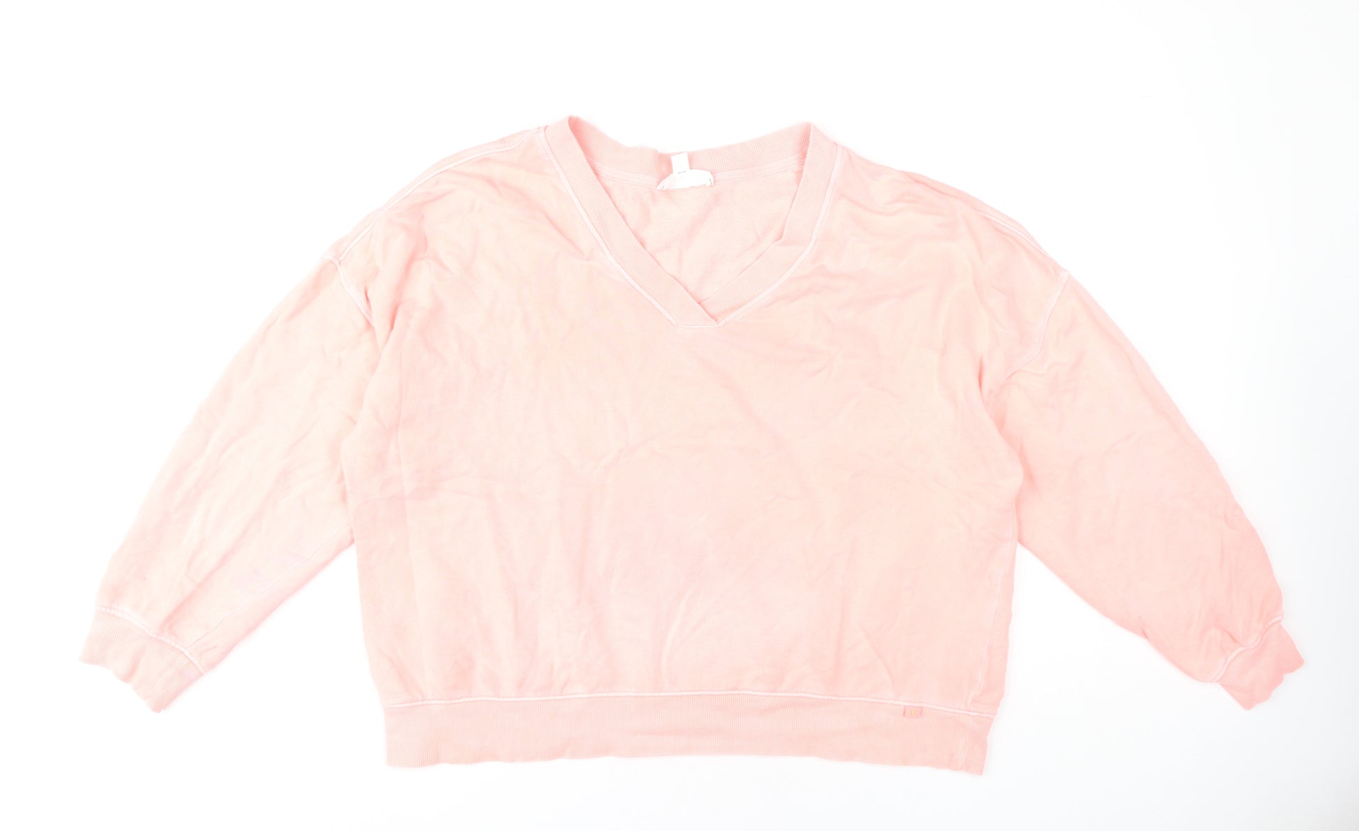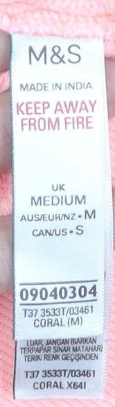 Discover casual comfort with the Marks and Spencer Women's Pullover Sweatshirt in a delightful shade of pink. Designed for everyday wear, this medium-sized sweatshirt is crafted from a soft jersey fabric, offering a snug and gentle feel against your skin. The easy-care nature of the material ensures that it maintains its softness and quality throughout numerous washes. Featuring a classic V-neckline and long sleeves, this sweatshirt harmoniously combines style with functionality, making it an ideal choice for a laid-back day out or a cozy evening in. With its regular fit, it provides ample room for movement while maintaining a flattering silhouette. This versatile piece can be paired effortlessly with jeans or leggings, making it a valuable addition to your casual wardrobe. The sweatshirt encompasses a smart construction with 96% cotton and 4% elastane, ensuring both comfort and durability. It boasts a simple, no-pattern design, allowing you to accessorize or layer as per your preference. Suitable for all seasons, this Marks and Spencer pullover offers a timeless option for those seeking both style and practicality. Whether you're lounging at home or stepping out for an errand, this sweatshirt promises to be your go-to choice.