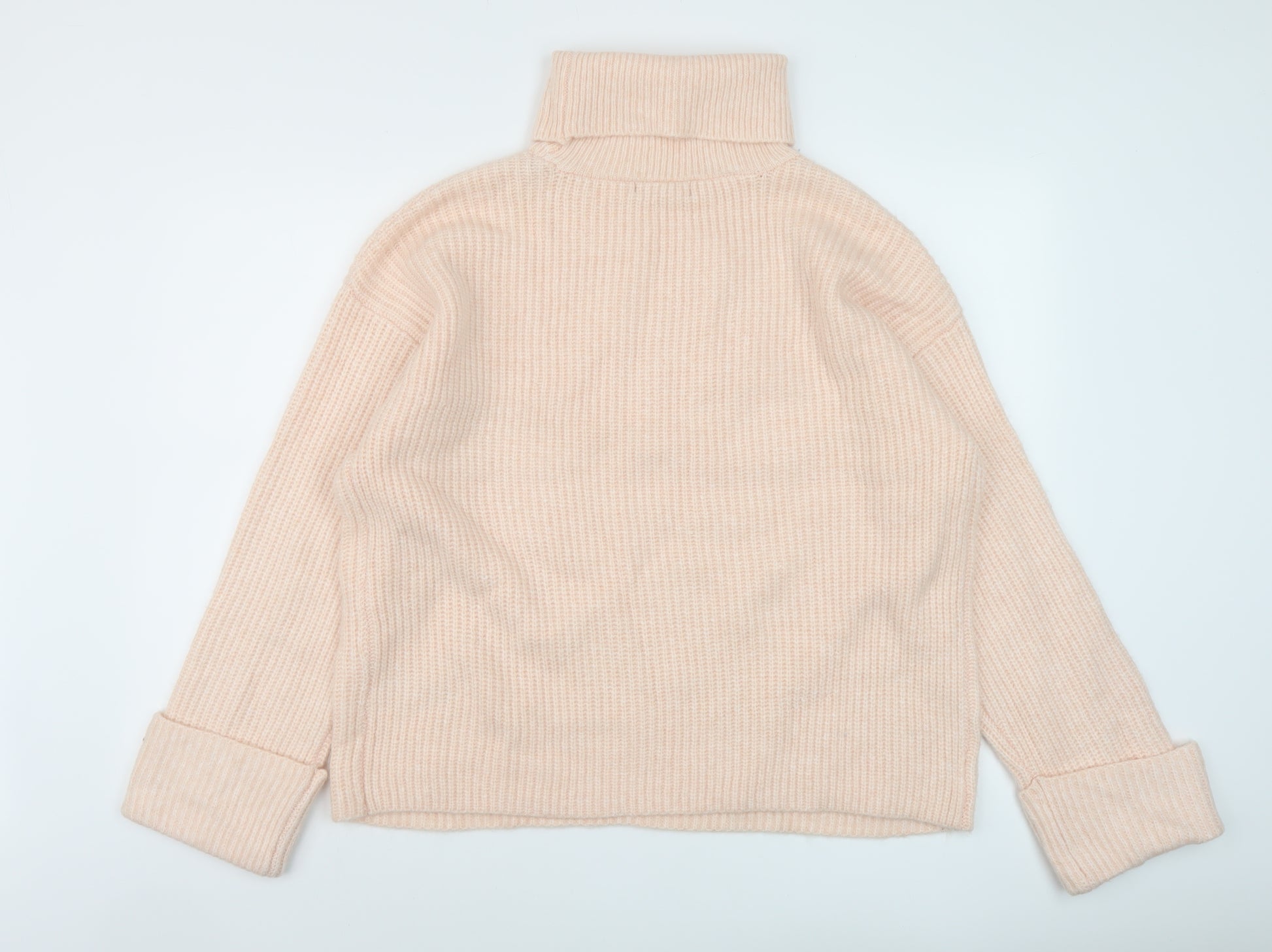Womens Pink Roll Neck Polyamide Pullover Jumper Size M