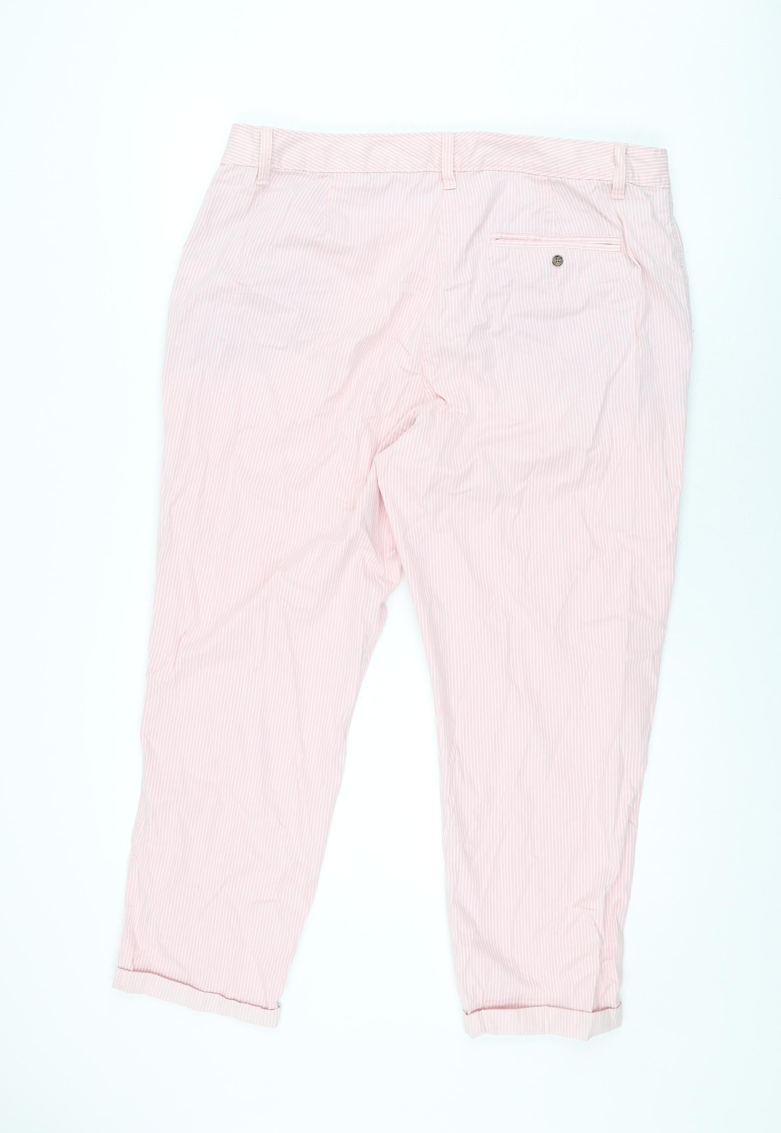 Womens Pink Striped Cotton Chino Trousers Size 18 L27 in Regular Zip