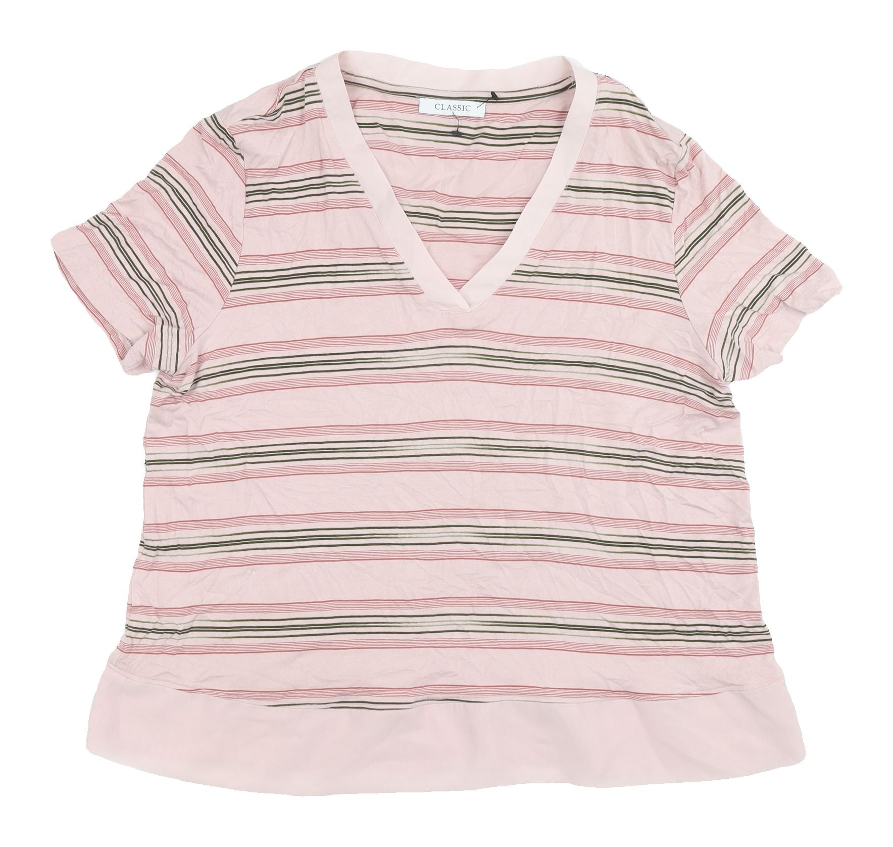 Women's Pink Striped V-Neck T-Shirt, Size 14