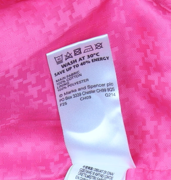 This stylish and vibrant pink trench coat from Marks and Spencer is an excellent addition to your wardrobe, perfect for both spring and autumn seasons. Crafted from 100% cotton, it offers a comfortable, breathable wear while maintaining an elegant appearance. The polyester lining enhances durability and comfort, ensuring you stay warm on breezy days. Featuring a classic mid-length design, this coat is belted to accentuate your silhouette while providing a timeless, chic look. The button accents add a touch of sophistication, making it suitable for casual outings as well as semi-formal occasions. Designed for women, the coat is in excellent condition, with slight marks on the back that are barely noticeable. Ideal for regular fit, its machine washable fabric ensures easy maintenance. Embrace this coat's comfortable, stylish charm and add a pop of colour to your ensemble.