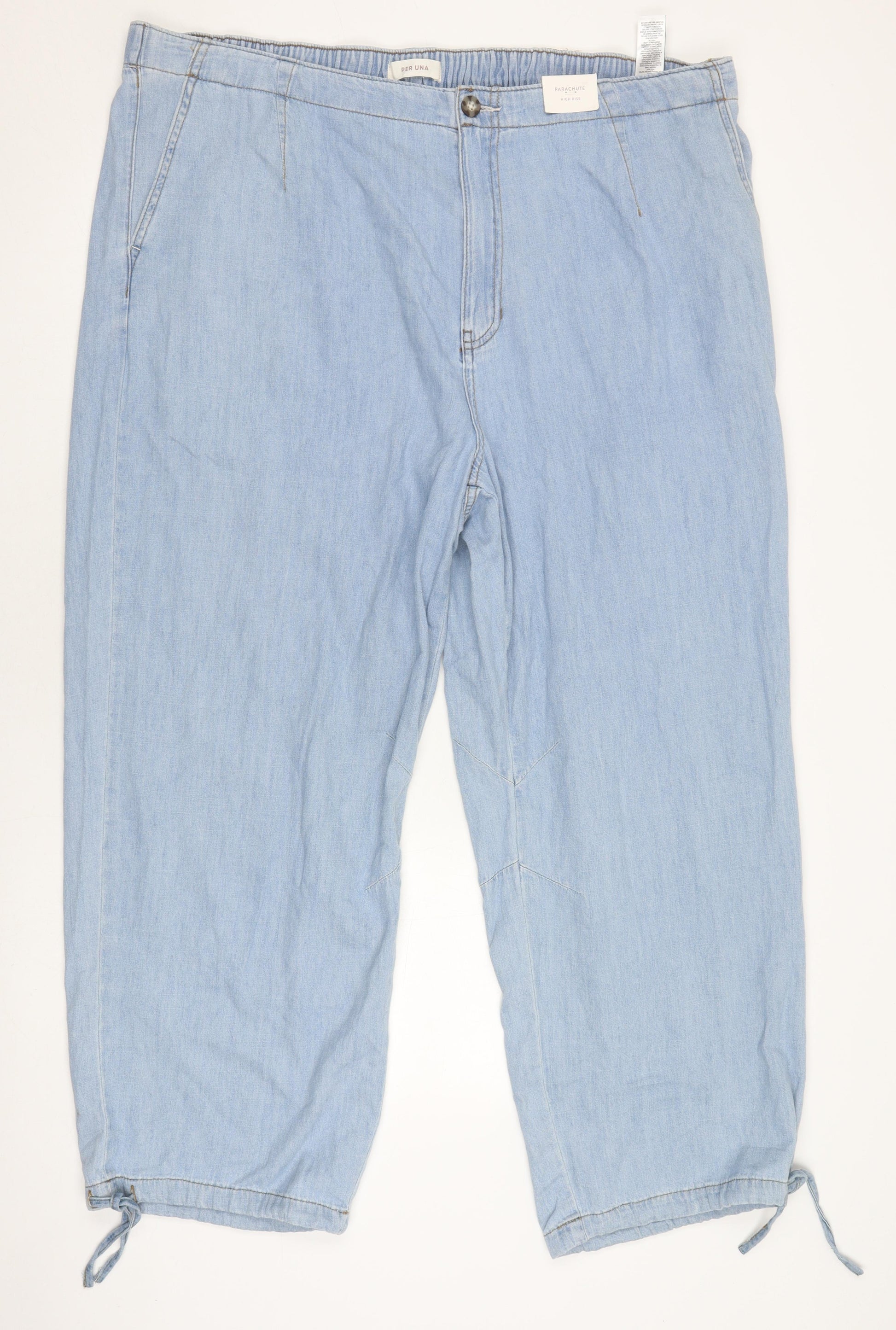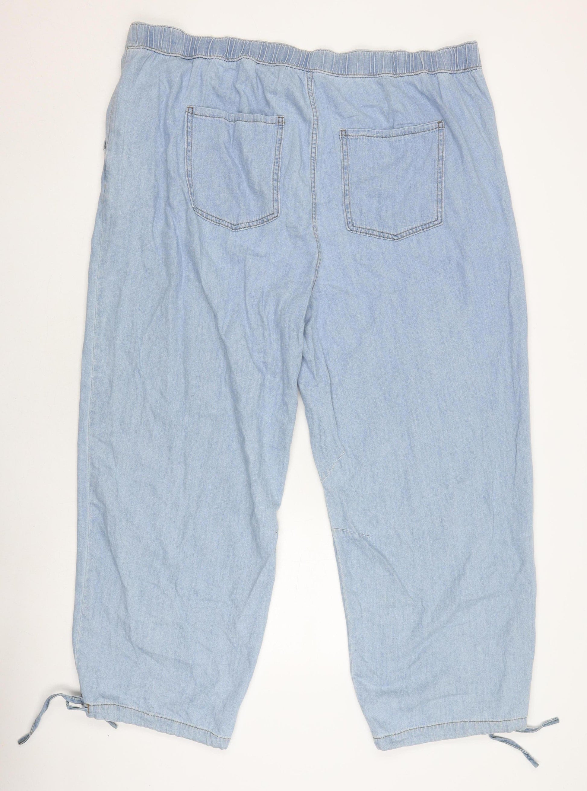 Experience comfort and style with these Marks and Spencer Women's Plus Blue Capri Jeans. Designed with a regular fit, these light indigo jeans perfectly blend casual elegance with everyday practicality. Made from 100% cotton, the jeans offer a breathable and comfortable feel, ideal for spring and summer wear. The classic button closure adds a subtle accent, enhancing the laid-back capri style. These jeans are machine washable, allowing for easy care and maintenance, making them a great choice for daily use. Though no original tags are attached, the condition remains excellent, showing no signs of wear or damage. These denim jeans provide a relaxed yet stylish look, perfect for any laid-back outing. They are designed to fit comfortably for plus sizes, ensuring you not only look great but feel confident as well. Whether you're heading to a casual lunch or running errands, these jeans will keep you stylishly at ease throughout the day.