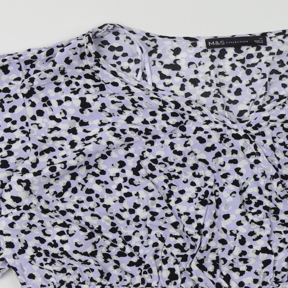 Womens Purple Animal Print Viscose Basic Blouse Size 22 V-Neck