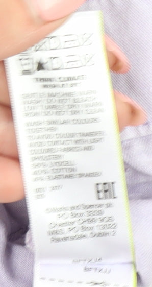 Explore the blend of style and comfort with these Marks and Spencer Purple Cargo Trousers, crafted for women who appreciate both fashion and functionality. Made from a soft and durable cotton-elastane blend, these trousers offer a relaxed fit with a mid-rise for added comfort, making them perfect for daily wear or travel. The tapered leg ensures a modern silhouette, while the belted feature enhances their casual charm. These trousers are equipped with practical pockets, providing ample storage for your essentials. The versatile purple colour adds a touch of elegance, easily pairing with various tops and accessories. Ideal for spring and summer, these cargo trousers are machine washable, ensuring easy care and maintenance. Whether you're exploring the city or enjoying a leisurely day out, these trousers are designed to complement your lifestyle effortlessly.