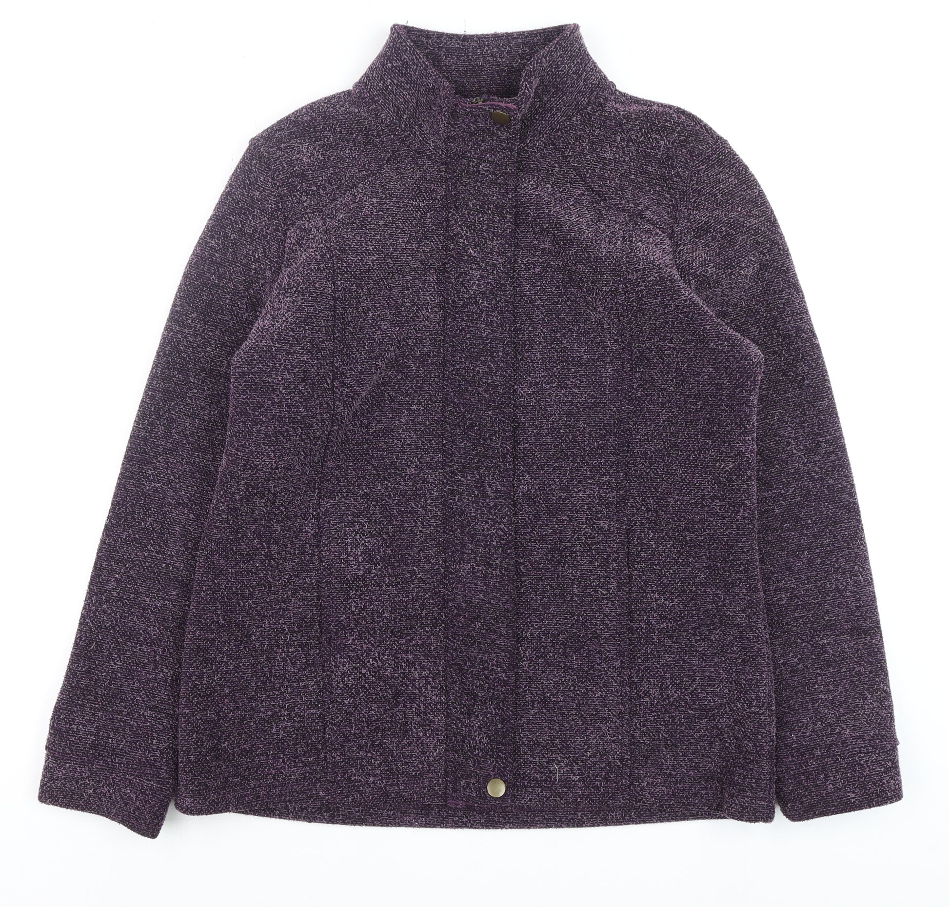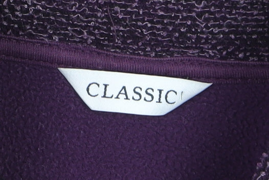 Add warmth and style to your wardrobe with this Marks and Spencer Women’s Classic Jacket in a rich purple tone. Crafted from soft fleece fabric for comfort, this mid-length jacket features a smart stand collar and button-and-zip fastening for a practical yet polished look. The 100% polyester outer shell provides a smooth, cosy texture that's ideal for layering during cooler months. Lined for extra comfort and insulation, it offers a lightweight feel without compromising warmth, making it suitable for autumn and winter wear. Designed in a regular, classic fit, this jacket flatters the feminine silhouette without feeling restrictive, ensuring ease of movement for daily wear. The subtle button detail adds a refined touch, while the pockets provide functionality for keeping essentials close to hand. Perfect for casual outings, travel, or everyday errands, this versatile piece brings together durability and effortless elegance. The deep purple hue pairs beautifully with both neutral and bold ensembles, offering a timeless addition to any outerwear collection. Though gently used, the jacket shows minimal signs of wear and remains in excellent condition, with no visible flaws. Machine washable for easy care, it maintains its soft texture and colour after multiple wears. Ideal for women who value practical and enduring style, this Marks and Spencer piece ensures you stay comfortable and chic, whether dressing for a weekend walk or a cozy evening out. Choose this fleece jacket for reliable warmth and understated sophistication in one versatile design.