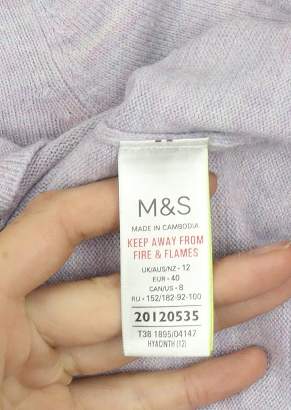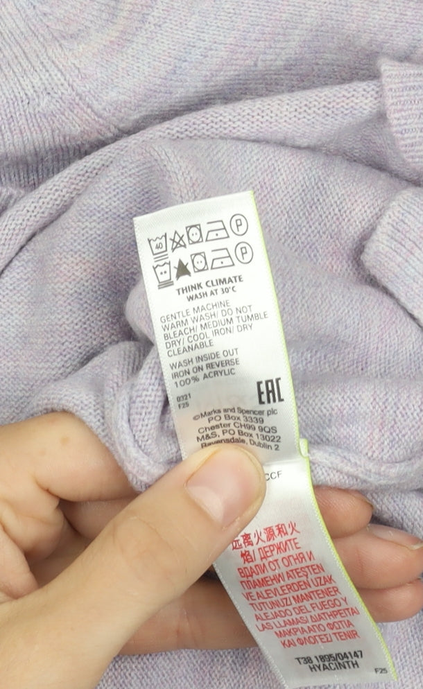 Marks and Spencer Womens Purple Chunky Knit Wool Blend Mock Neck Jumper Size 12