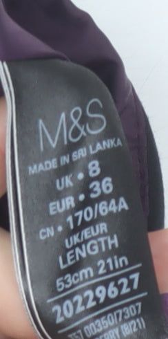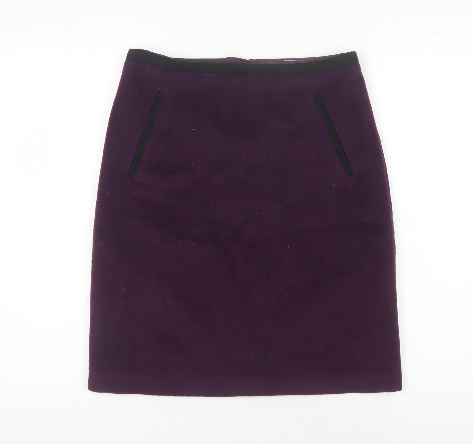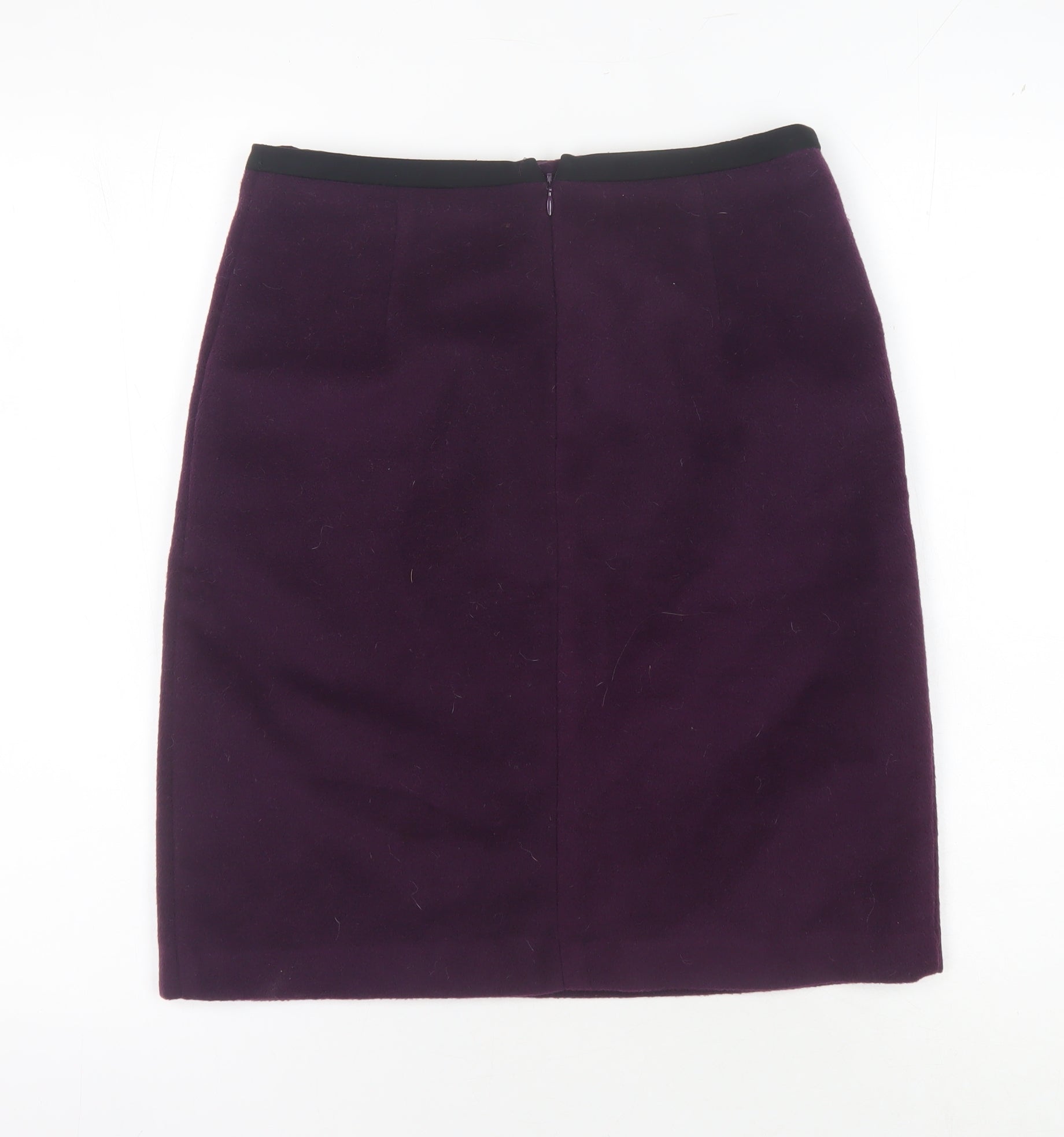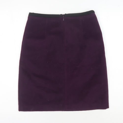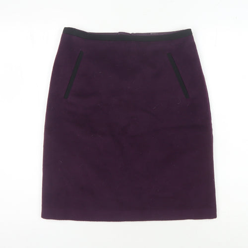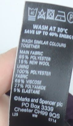 Elevate your wardrobe with this elegant purple pencil skirt from Marks and Spencer, designed for the modern woman. Tailored for a sleek and sophisticated look, this knee-length skirt is perfect for various occasions like business meetings and formal events. Crafted from a blend of polyester and wool, it offers a smooth feel and a snug fit that enhances your silhouette. The classic purple hue adds a touch of class and versatility, allowing you to pair it effortlessly with a range of tops and blouses. Featuring a zip closure, this skirt promises easy wear and a seamless finish. Despite being in excellent condition, this pre-loved piece showcases slight signs of wear, characteristic of its previous use. Embrace the quality and style of Marks and Spencer with this wardrobe essential, ideal for injecting a touch of luxury into your daily outfits.