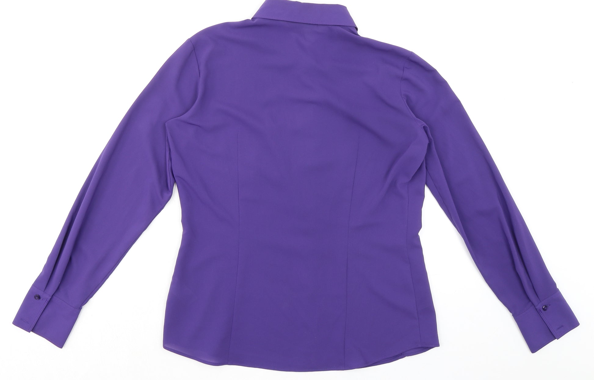 Womens Purple Polyester Basic Button-Up Size 12 Collared