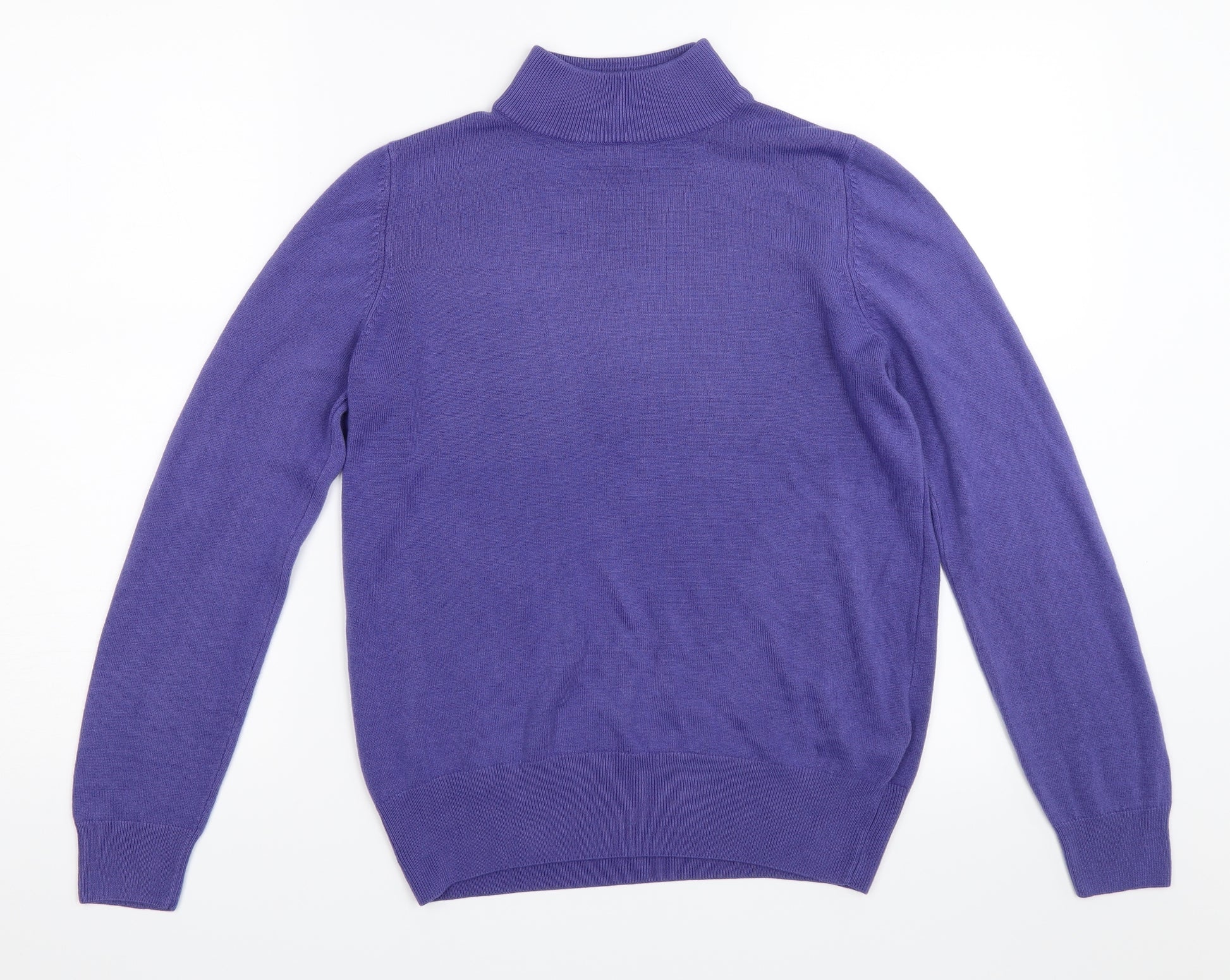 Marks and Spencer Womens Purple Chunky Knit Wool Blend Mock Neck Jumper Size 12