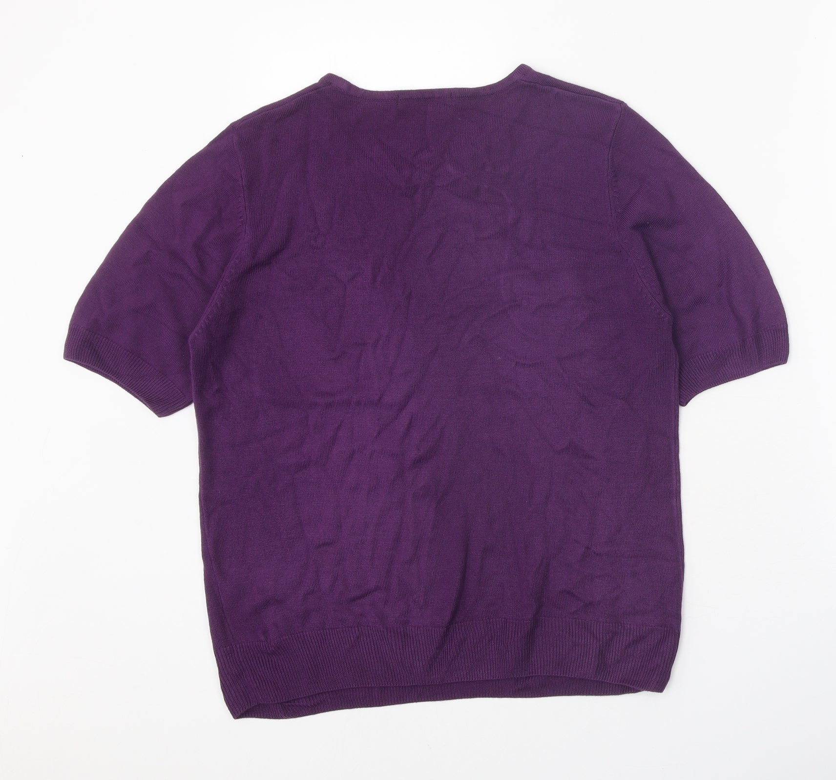 Womens Purple Round Neck Acrylic Pullover Jumper Size 14