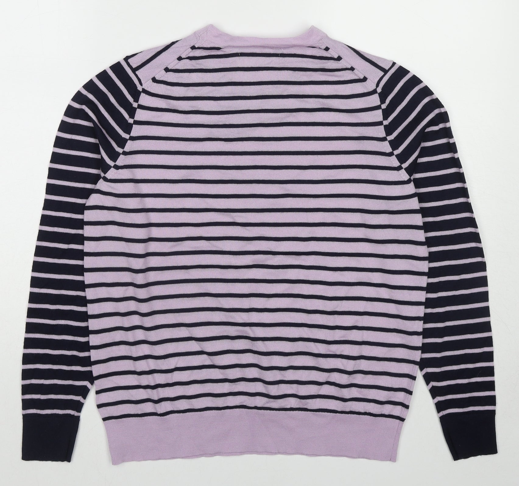 Womens Purple Round Neck Striped Wool Pullover Jumper Size 14