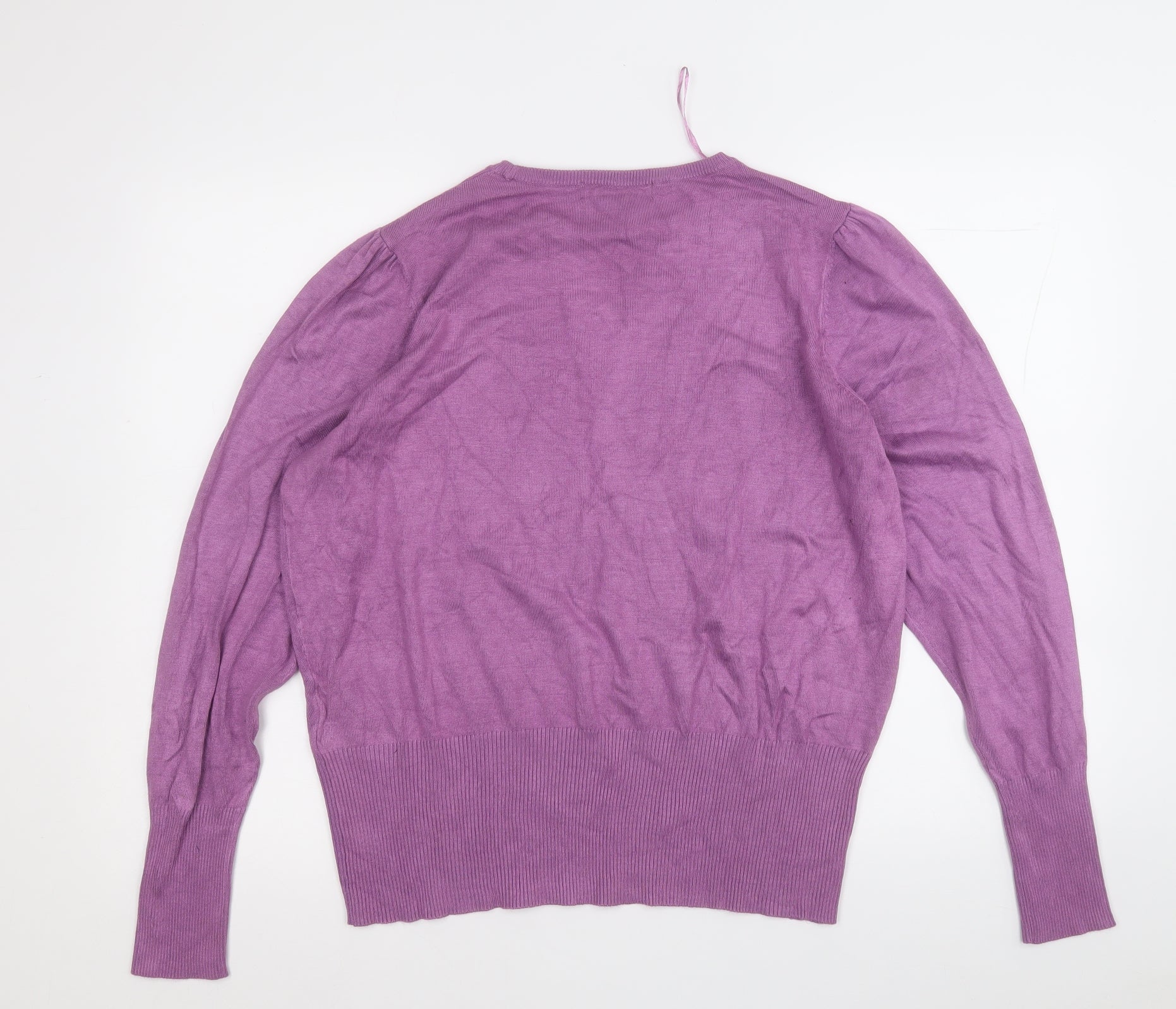 Womens Purple Round Neck Viscose Pullover Jumper Size 18