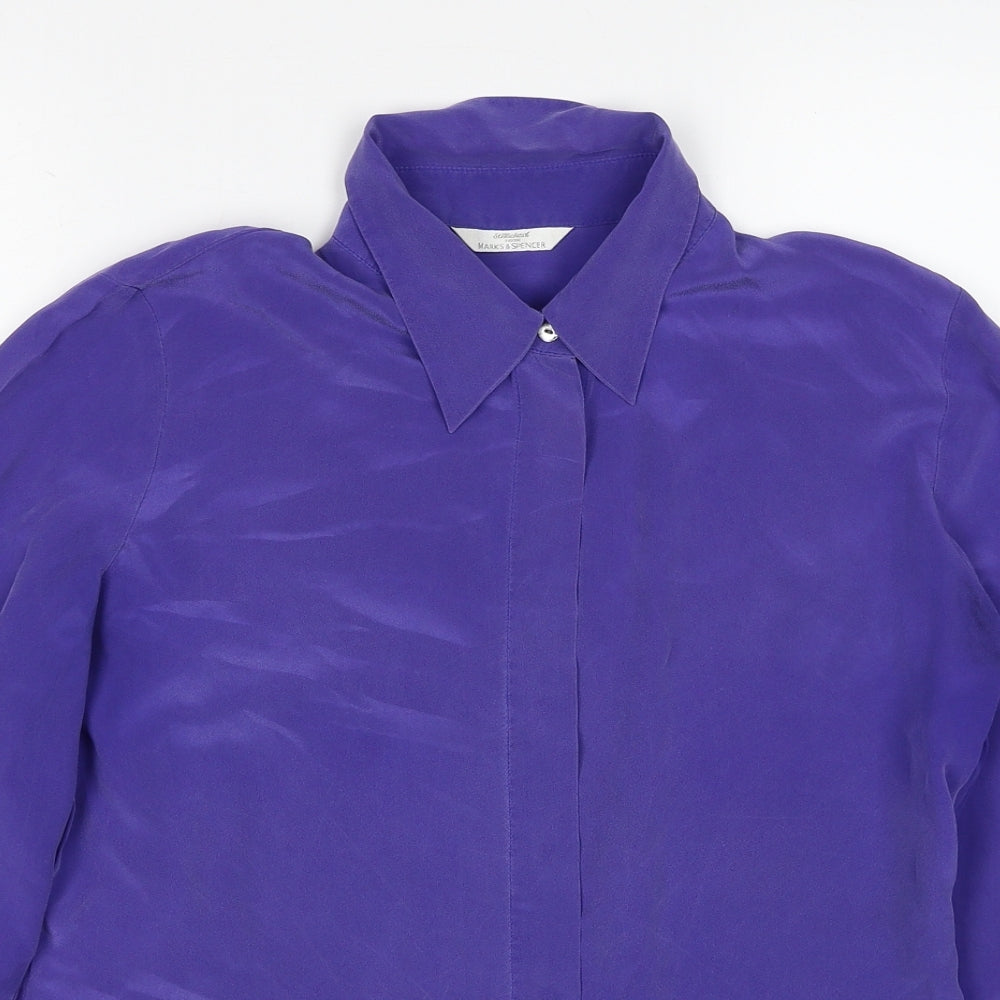 Womens Purple Silk Basic Button-Up Size 12 Collared