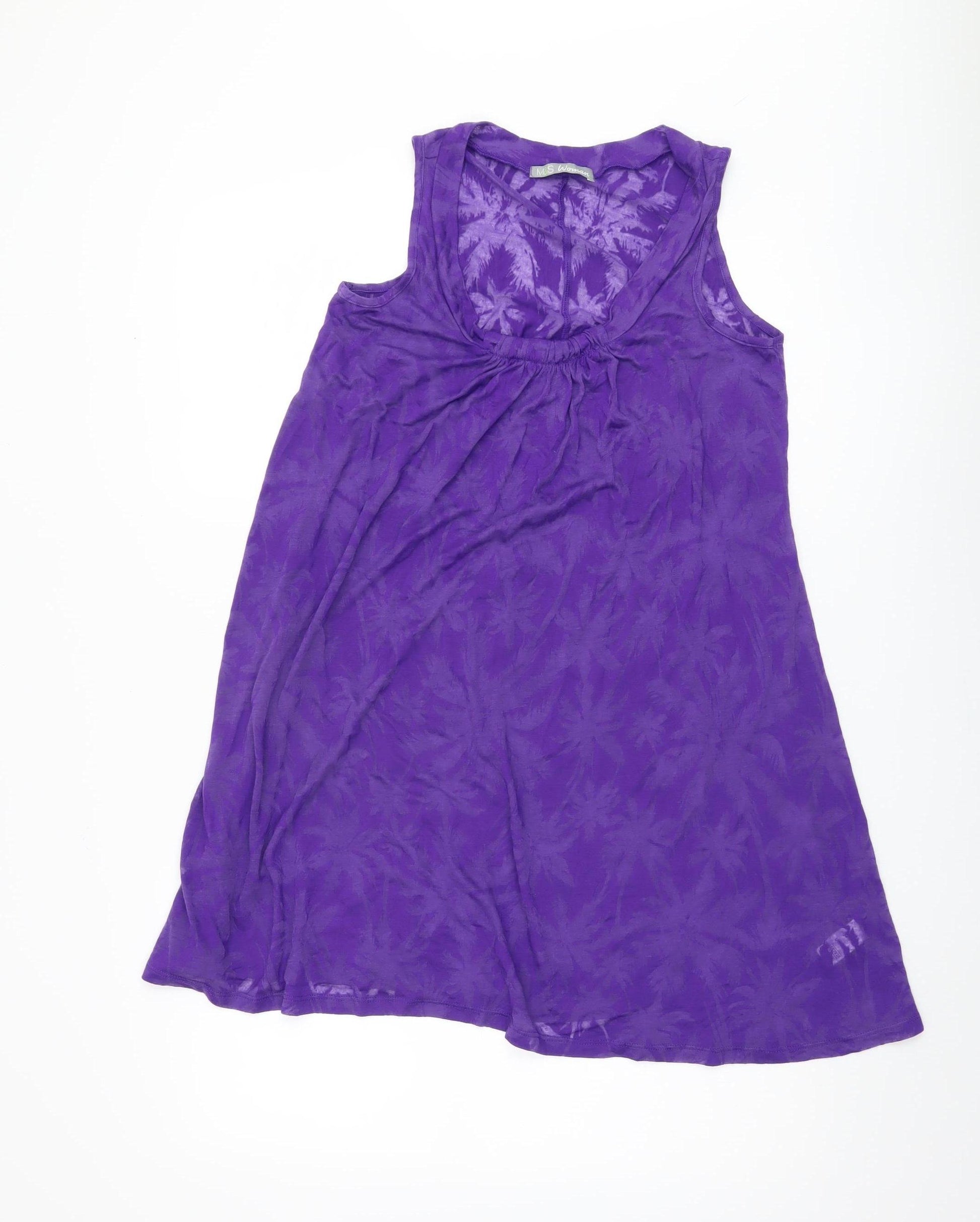 Embrace effortless style with this Marks and Spencer women's tank top, designed elegantly in a vibrant purple hue. Perfect for casual outings or layering, this sleeveless top offers a classic scoop neckline that adds a touch of sophistication. Made from a high-quality blend of 70% polyester and 30% viscose, it promises a comfortable fit and durability, ensuring it remains a staple in your wardrobe for seasons to come. The regular fit complements various body types and provides ease of movement, ideal for both everyday wear and special gatherings. As a reliable choice for warm days, this tank is machine washable, making it easy to care for without compromising on the quality. Despite being in excellent condition with no original sales tags, it still retains its original charm, appearing gently worn. Pair it with jeans, shorts, or skirts for a versatile look that captures a chic and laid-back vibe. This piece is perfect for those who appreciate brand quality and a vibrant colour palette in one package, promising to uplift any casual attire effortlessly.