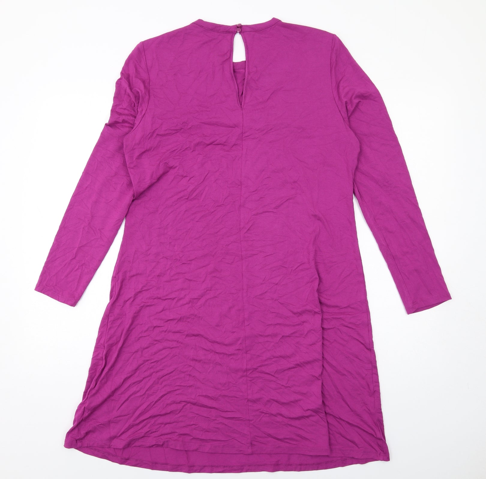 Womens Purple Viscose Jumper Dress Size 14 Crew Neck Button