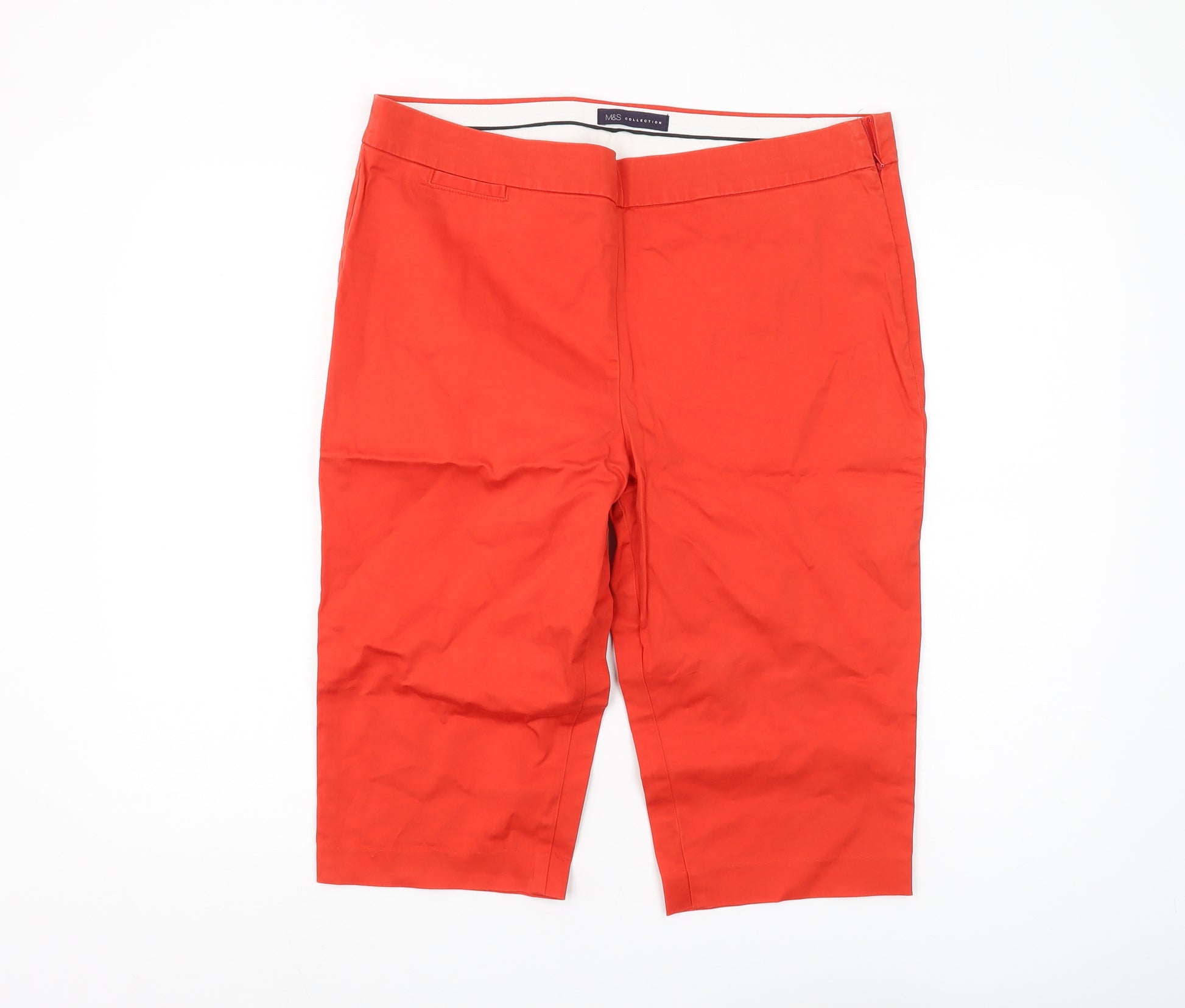 Upgrade your wardrobe with these stylish red Bermuda shorts from Marks and Spencer. Perfect for women seeking a comfortable yet fashionable option, these shorts are ideal for casual summer outings. Crafted with a blend of 98% cotton and 2% elastane, they offer a regular fit, ensuring both comfort and flexibility. Featuring a flat front design and mid-rise, they deliver a sleek and classic silhouette. The zip closure provides ease of wear and the garment is machine washable, making it easy to care for. A great addition for casual occasions, these shorts fit seamlessly into any summer or spring wardrobe. Don't miss the opportunity to own these versatile shorts that perfectly balance style and comfort.