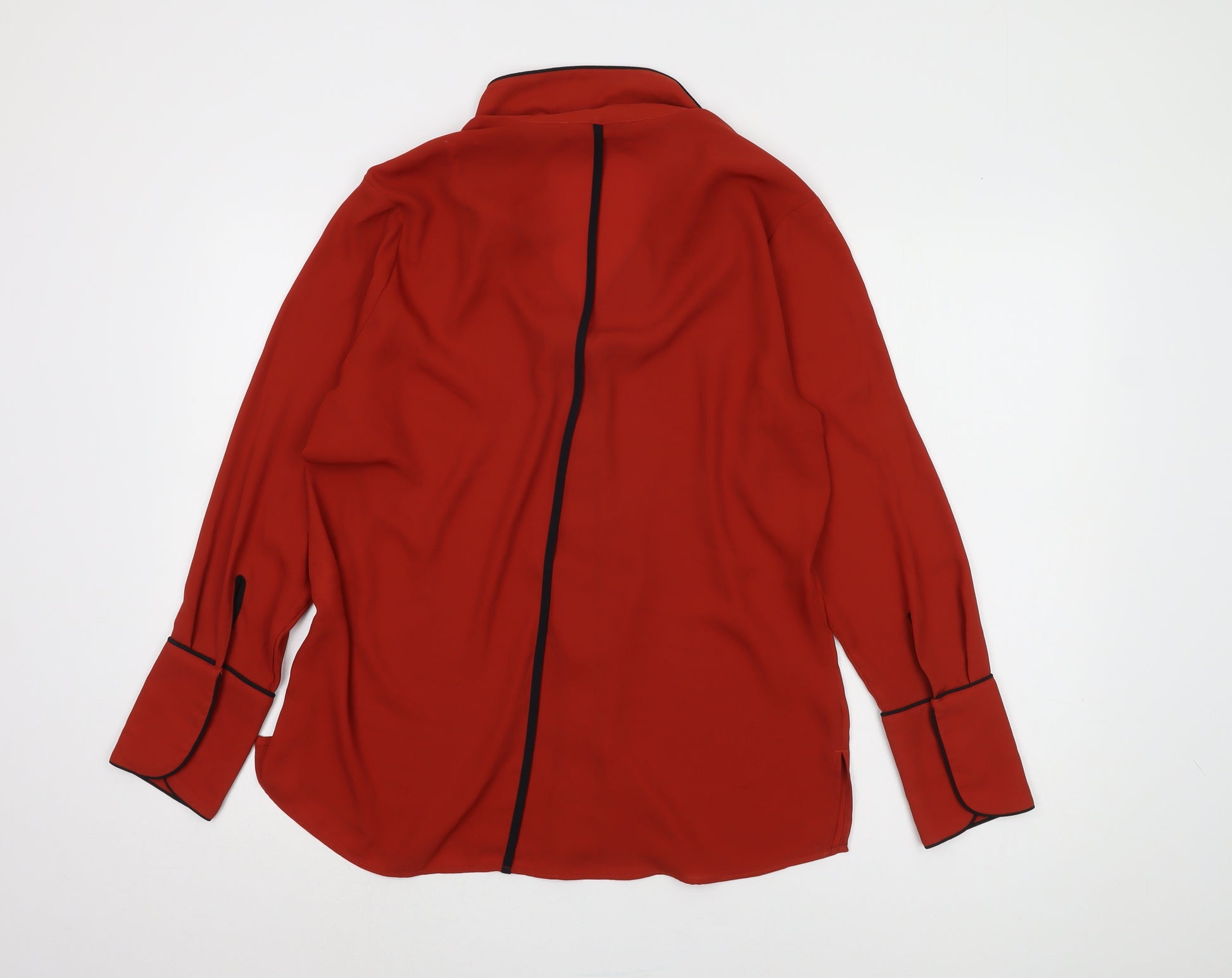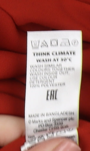 Enhance your wardrobe with this elegant red blouse from Marks and Spencer, perfect for elevating your style. Crafted from high-quality polyester, this piece offers both comfort and durability. The classic collared neckline and long fitted sleeves create a sleek silhouette suitable for a variety of occasions. Whether you're dressing up for a formal event or keeping it casual for work, this blouse is a versatile addition to your collection. Its regular fit ensures a flattering look, while the button closure adds a traditional touch to the design. Machine washable for ease of care, this blouse combines practicality with fashion effortlessly. Ideal for women seeking a stylish yet comfortable ensemble. Make a statement with this chic red blouse, a must-have for any fashion-forward individual.
