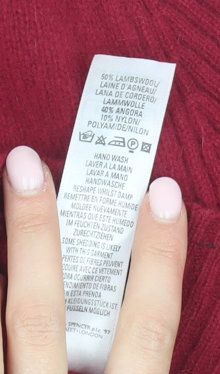 Enrich your wardrobe with this classic red jumper from Marks and Spencer, designed especially for women who love to combine style with comfort. Crafted from a luxurious blend of lambswool and angora, with a touch of nylon for durability, this jumper ensures warmth and softness to elevate your autumn and winter collection. The elegant collared neckline and tight-knit style ensure a sophisticated look, making it suitable for a variety of settings. The long sleeves offer added comfort, while its regular fit and size 10 design flatter your figure seamlessly. Although a vintage piece, this jumper is in very good condition, exhibiting no visible defects, ensuring you'll enjoy its charm for seasons to come. Pair it with your favourite jeans or a tailored skirt and step out with confidence. This timeless piece is perfect for adding a pop of refined colour to your ensemble.