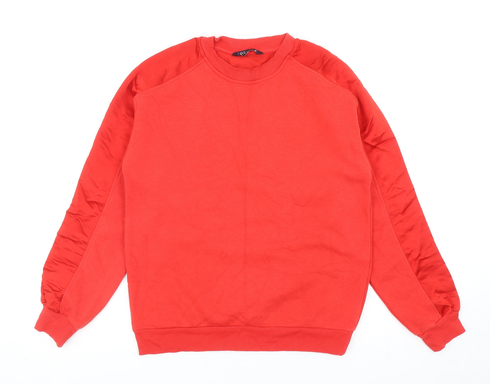 Womens Red Cotton Pullover Sweatshirt Size 8 Pullover - Satin Sleeve Detail