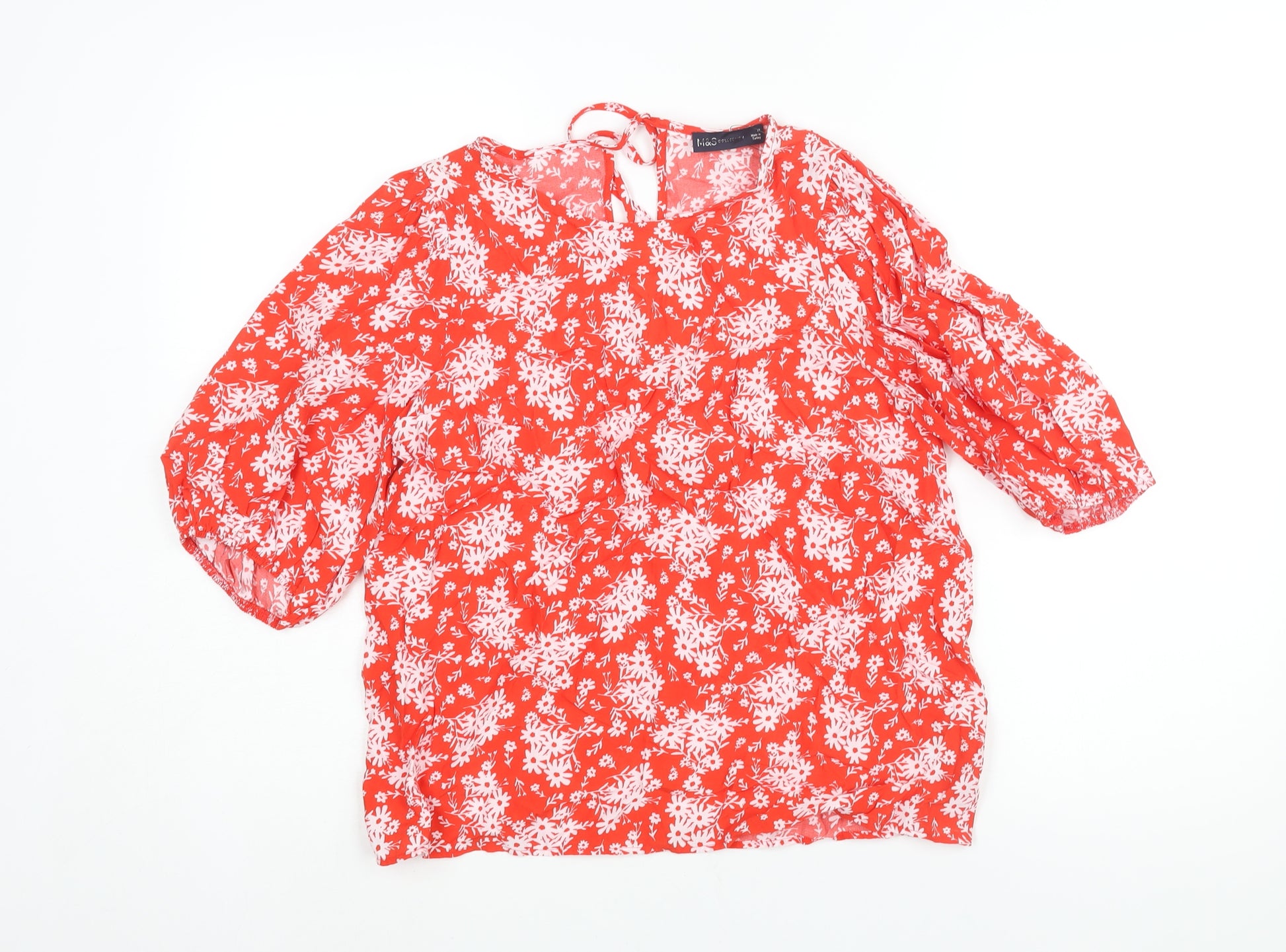 Womens Red Floral Viscose Basic Blouse Size 10 Round Neck