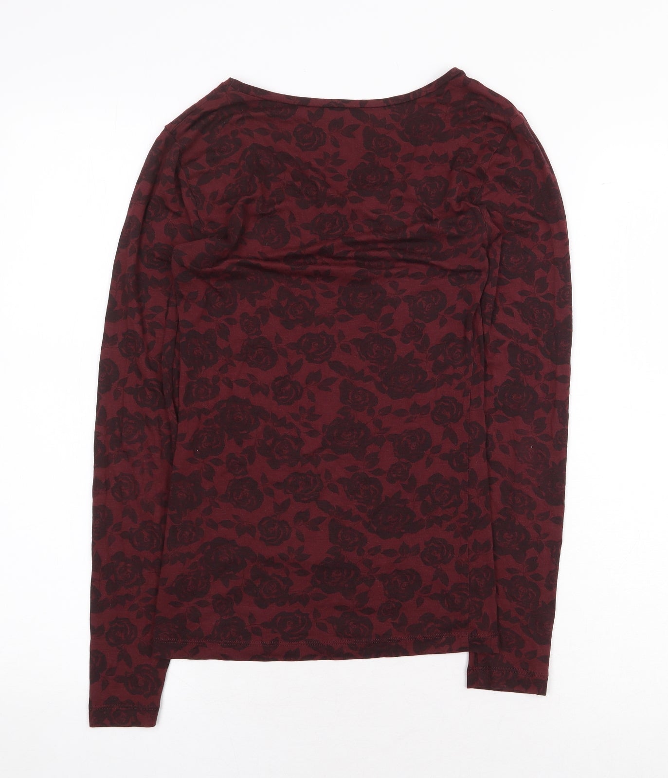 Womens Red Floral Viscose Basic T-Shirt Size 8 Scoop Neck