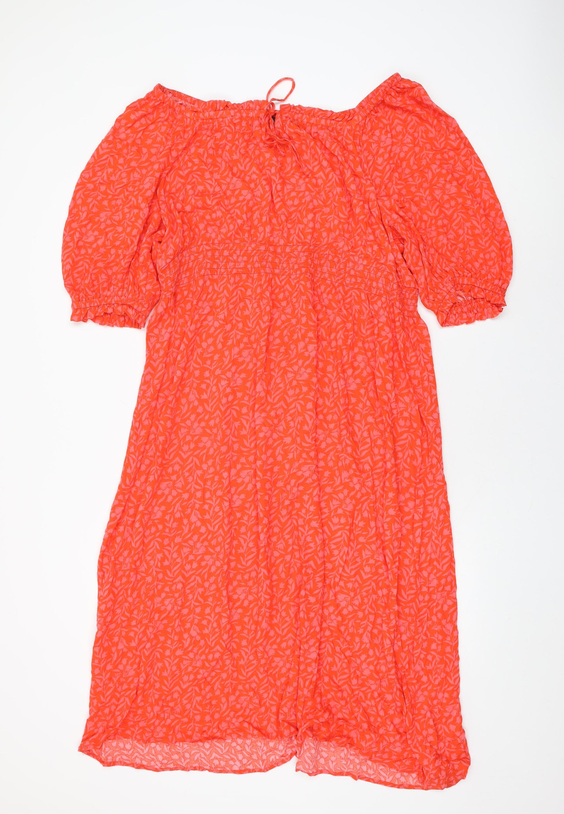 Womens Red Floral Viscose Shift Size 20 Off the Shoulder Pullover