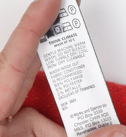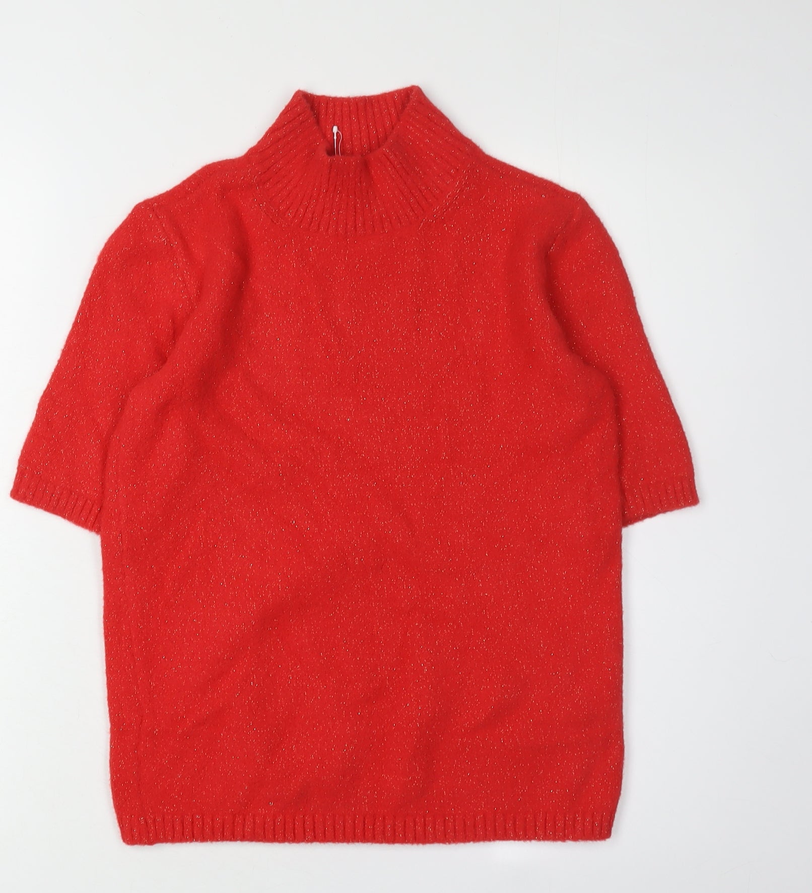Elevate your wardrobe with this vibrant red pullover jumper from Marks and Spencer, designed for women who appreciate style and comfort. In size XS, this piece is perfect for layering or wearing on its own during cooler months. It features a chic high neckline that adds a touch of elegance, making it suitable for both casual outings and more formal occasions. Crafted from a blend of polyamide, polyester, and metallic materials, this jumper not only looks stylish but also offers a comfortable and flexible fit. The short sleeves provide an added touch of style while keeping you warm, and the solid red colour ensures you can pair it with a variety of outfits. Despite a minor pull at the neckline, this jumper is in very good condition, ready to become a staple in your collection. Perfect for women who love a splash of colour in their wardrobe, this jumper is both machine washable and easy to care for. Don't miss out on adding this versatile piece to your collection, perfect for any occasion where you need to stay warm and stylish.