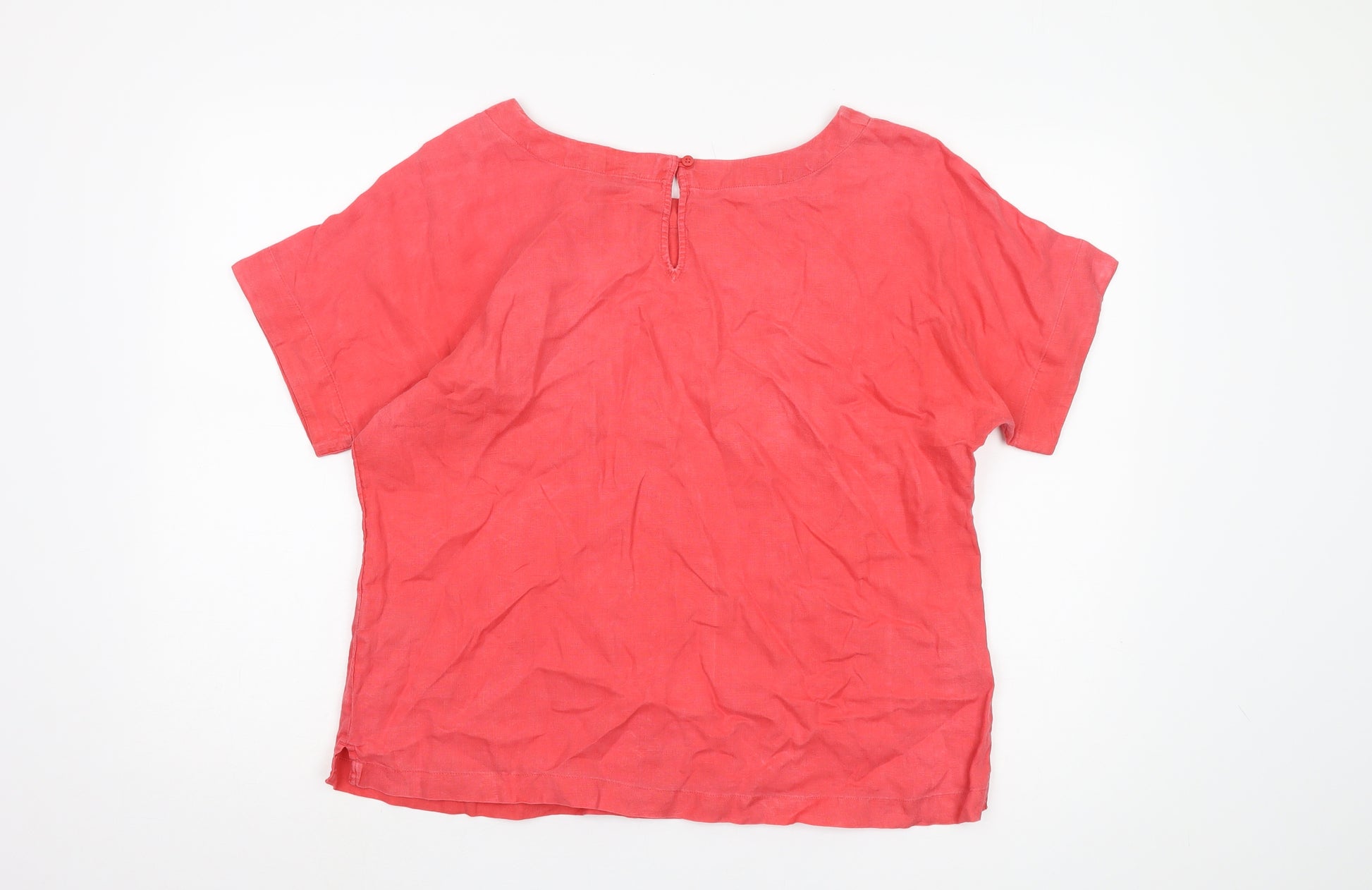 Elevate your summer wardrobe with this stylish Marks and Spencer women's top. Crafted from 100% linen, this red top not only offers comfort but also a relaxed, breathable fit perfect for warm days. The short sleeve design paired with a casual sleeve style provides a laid-back yet elegant appearance, ensuring comfort throughout the day. It features a classic boat neck that adds a touch of sophistication, while the solid red colour makes it versatile for pairing with various bottoms. Fastened with a subtle button closure at the back, it presents a neat finish, perfect for casual occasions or a day out. The pocket accent on the front adds functionality and a casual vibe, giving you a practical option while keeping the style intact. Designed in a relaxed fit, this top suits various body types, making it a staple piece for any wardrobe. Its machine-washable nature means it's easy to care for, enhancing its practicality. Whether you're heading out for a coffee, a stroll, or lounging at home, this UK size 14 red top is a splendid choice for those who appreciate both style and ease of wear. Embrace the beauty of linen and the trusted quality of Marks and Spencer. Ideal for women who favour a blend of elegance and comfort, it's a piece you'll reach for time and again.